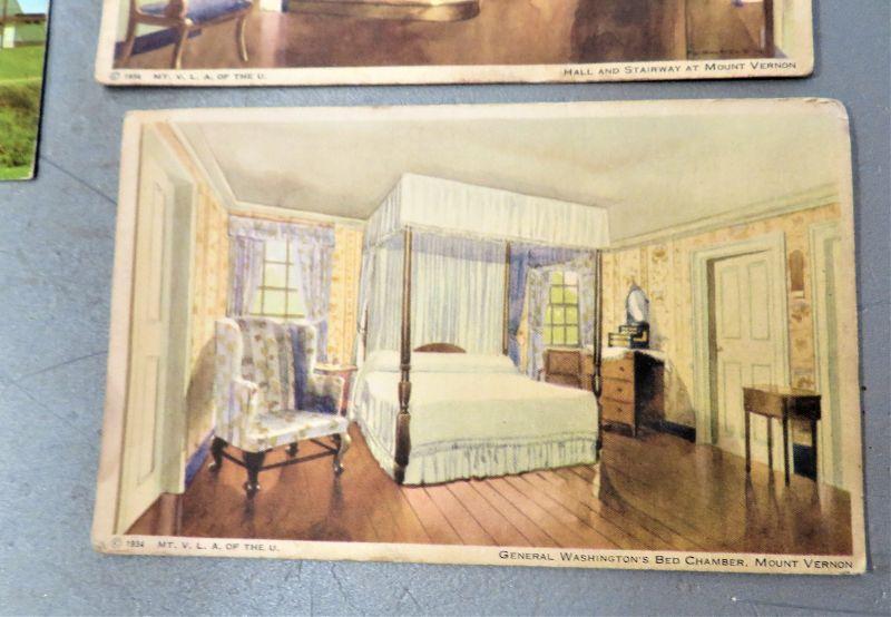 Vintage OLD POSTCARDS (1934-1939) BOX LOT (10) Famous Washington's Bedroom
