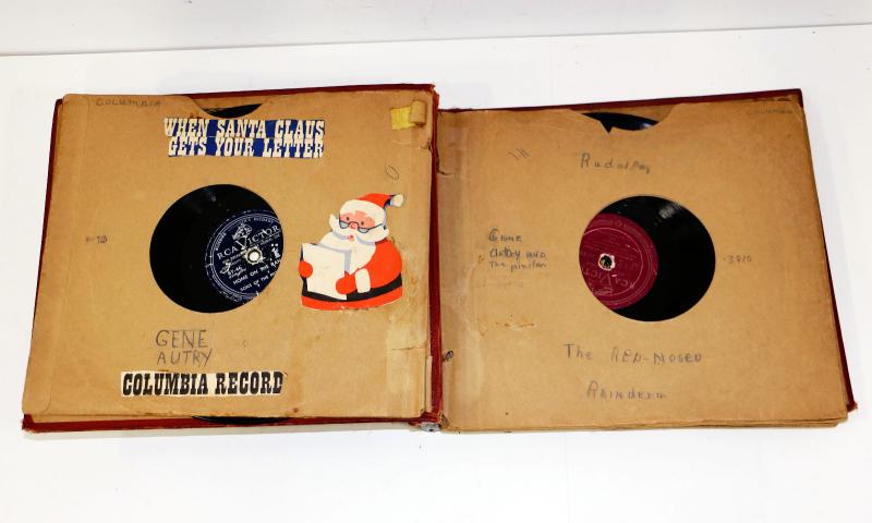 Antique Record Album with 10 records, 78 rpm, album also features old scrapbook decoration on it's pages, as seen on pictures.