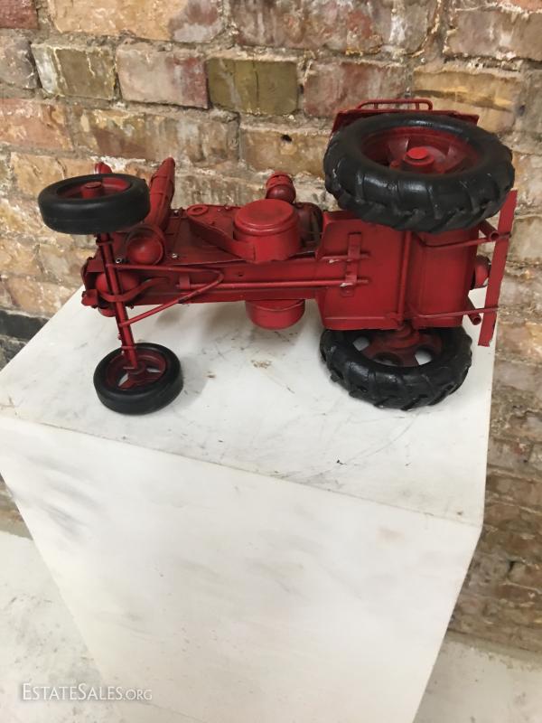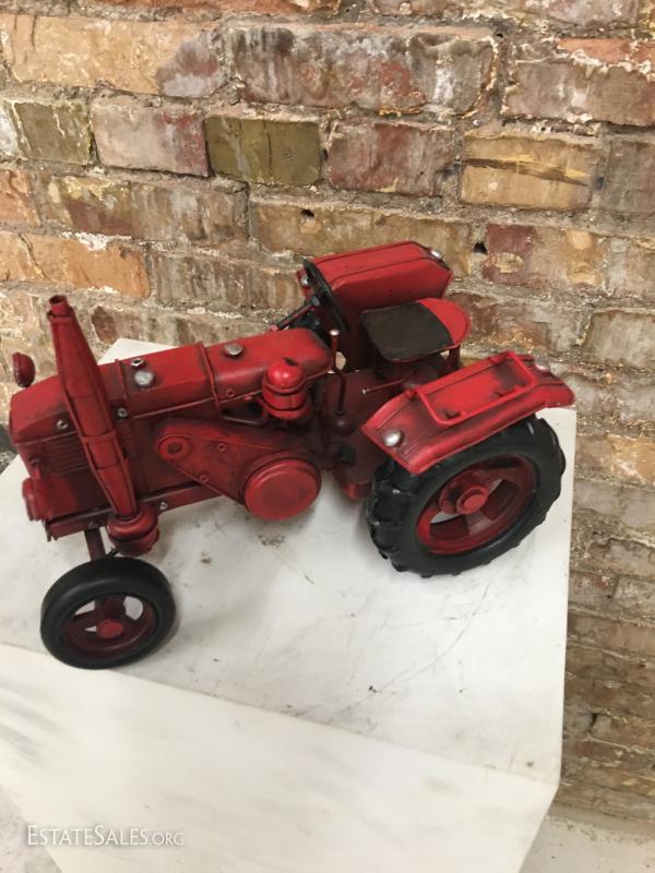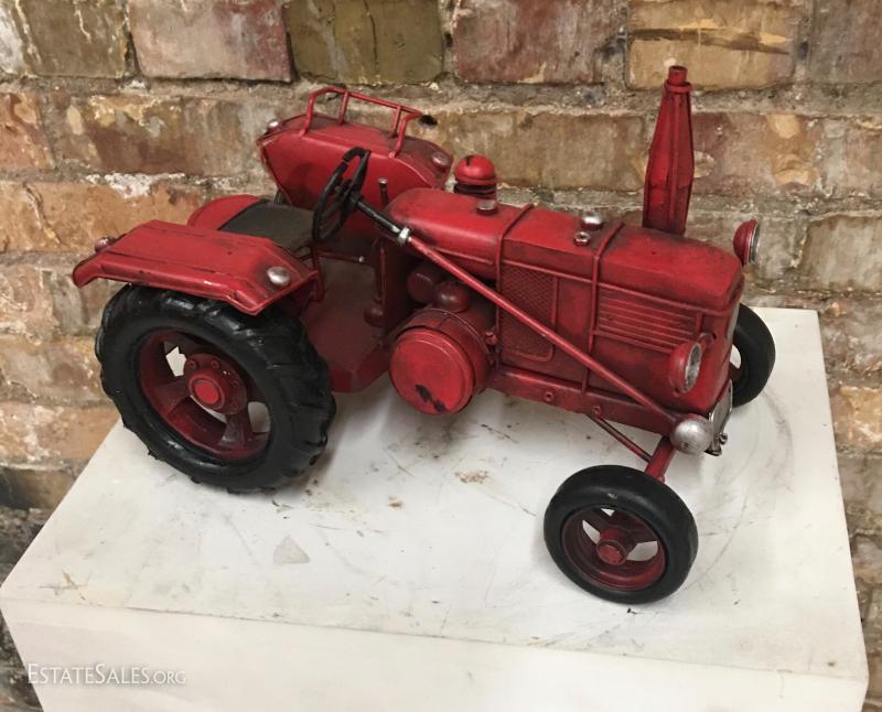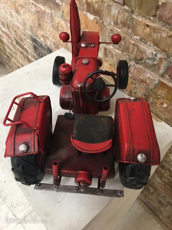 Tractor is a scale replica made of metal and plastic, measures 10" long.