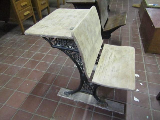 Old School House Desk with Cast Frame Bare Wood  LOC