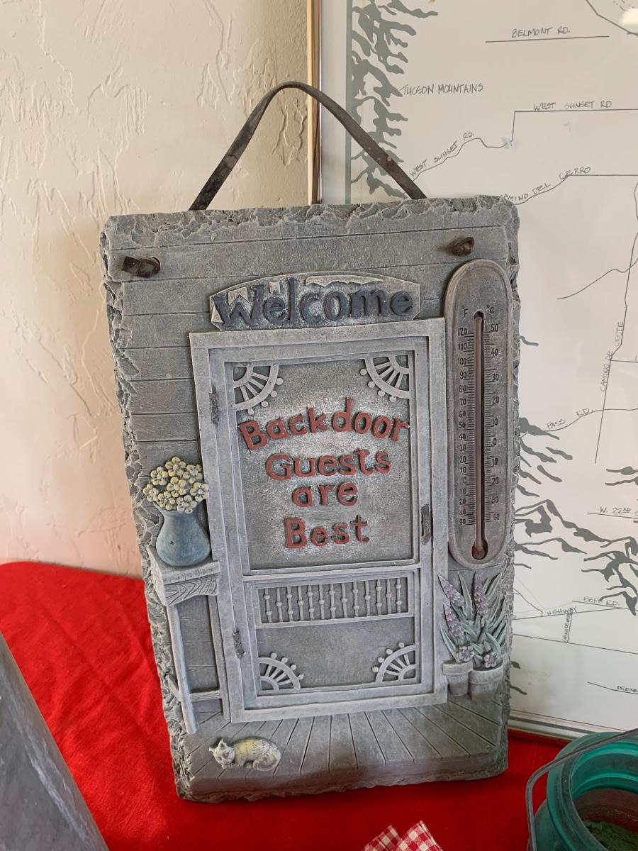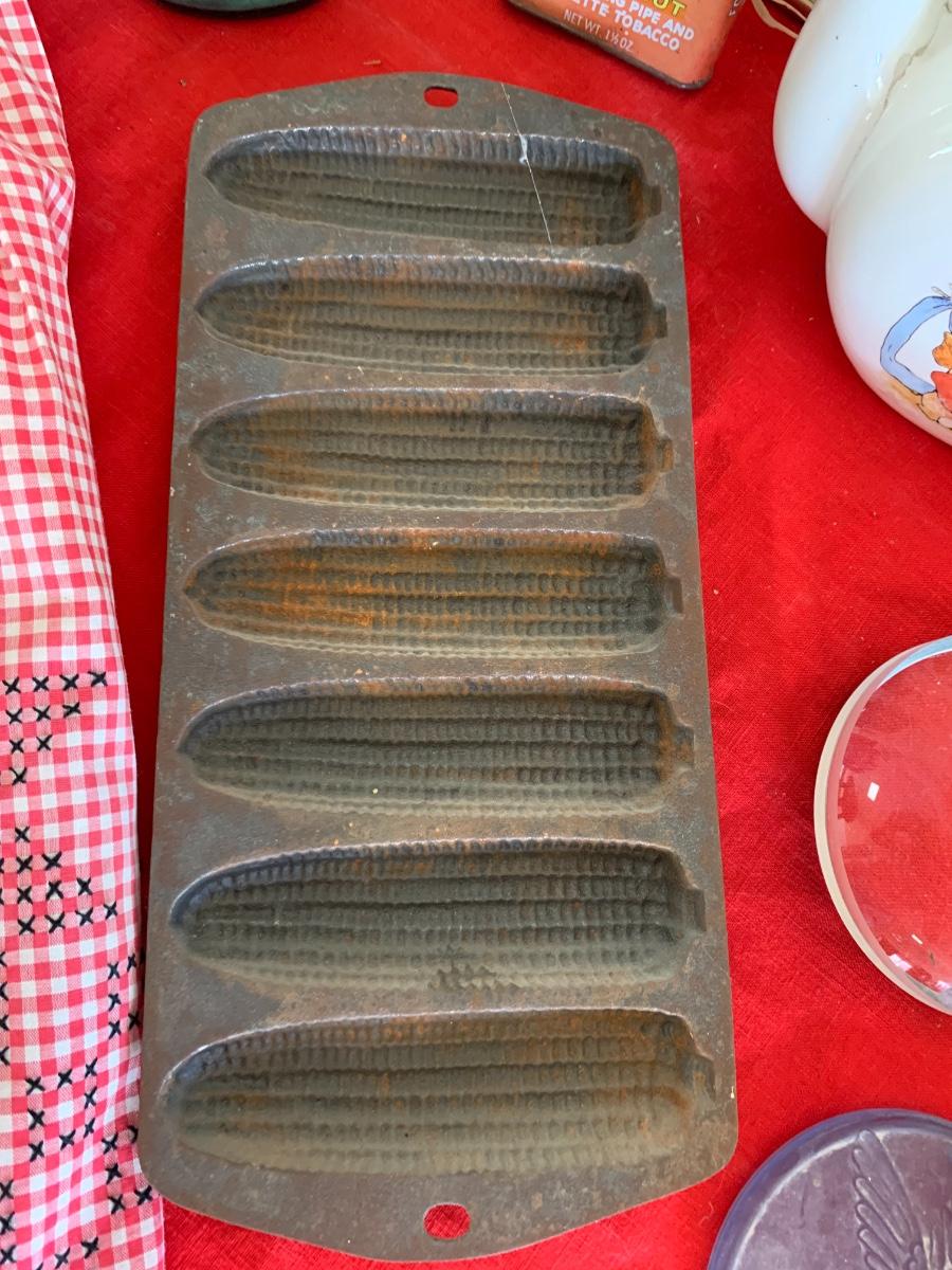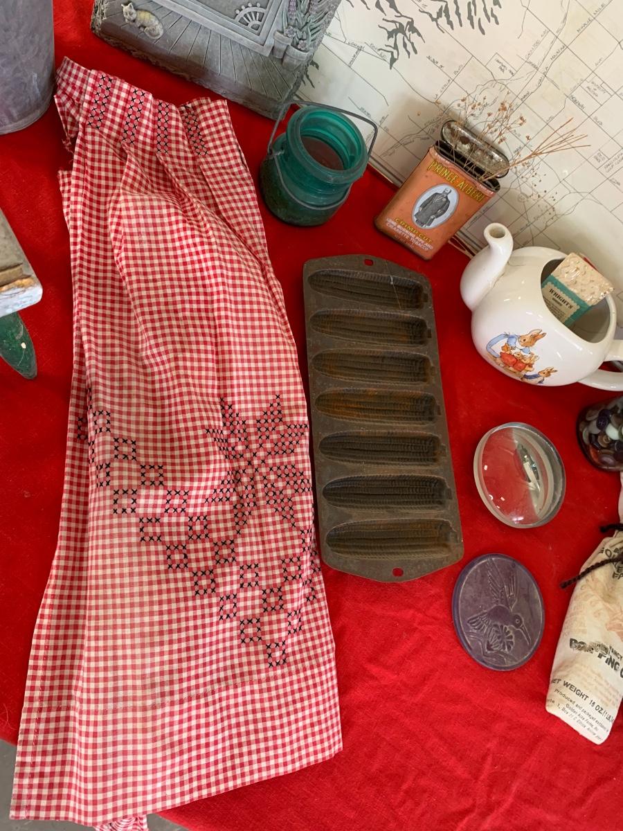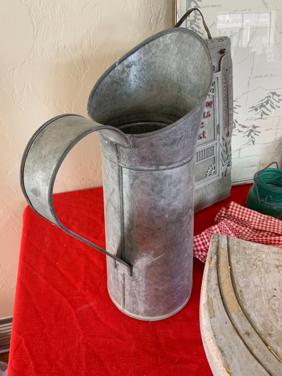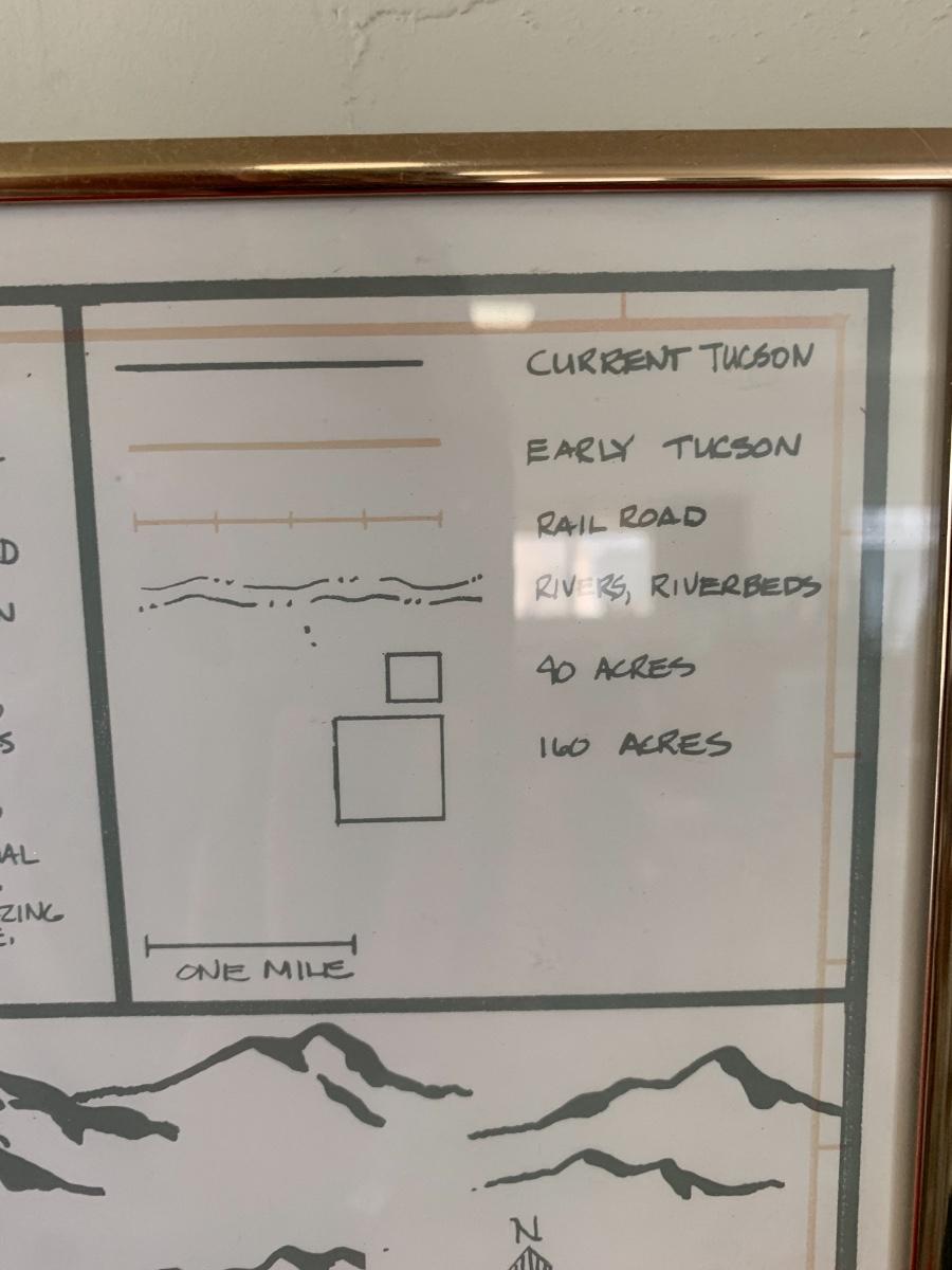 Includes a 1986 framed map of Tucson, a vintage watering can, two metal decor pitchers, an old Peter Rabbit creamer that was broken and repairs, a cast iron corn bread pan and more! Map 34” x 22”