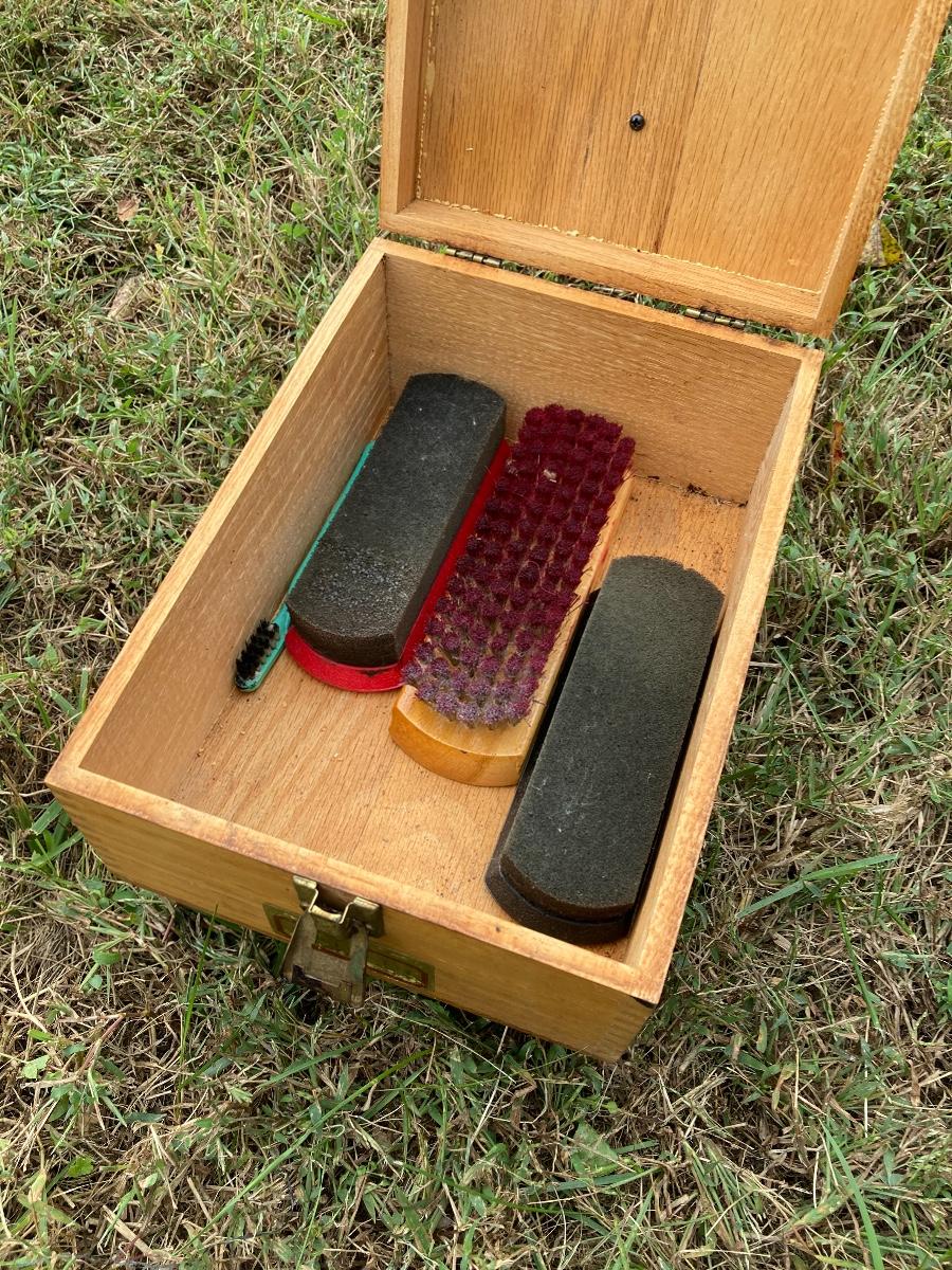 Old Shoe Shine Box. Wooden with contents