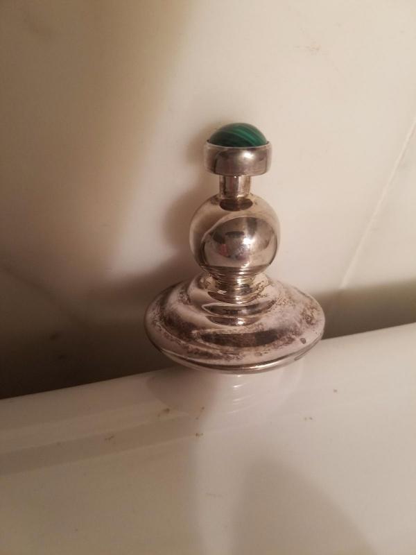 Real old silver little perfume bottle with real agate stone.
