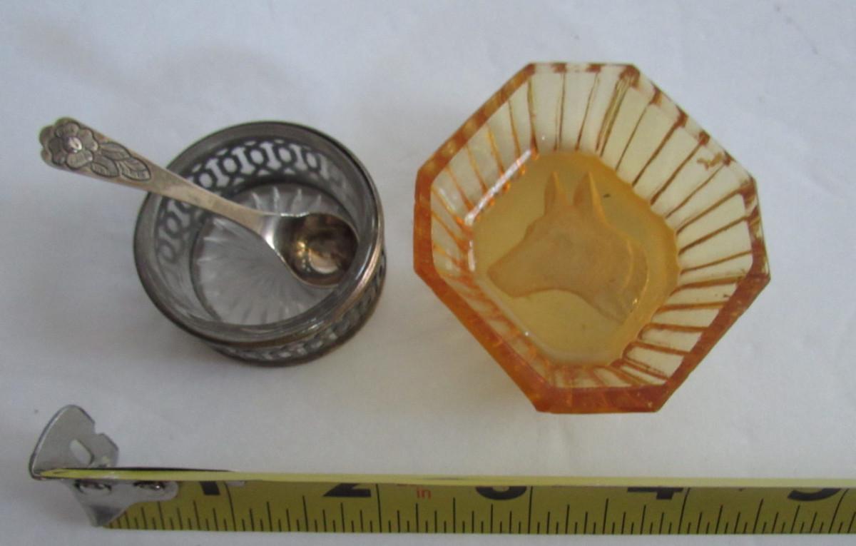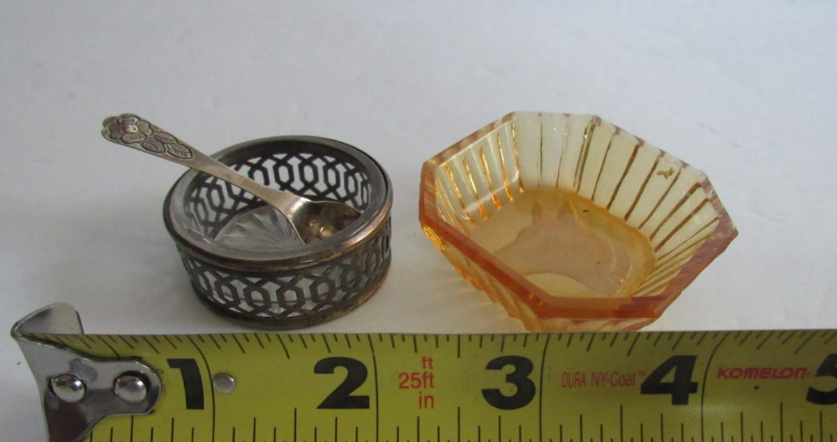 Old Silverplate Salt Dip and Amber Glass Salt Dip