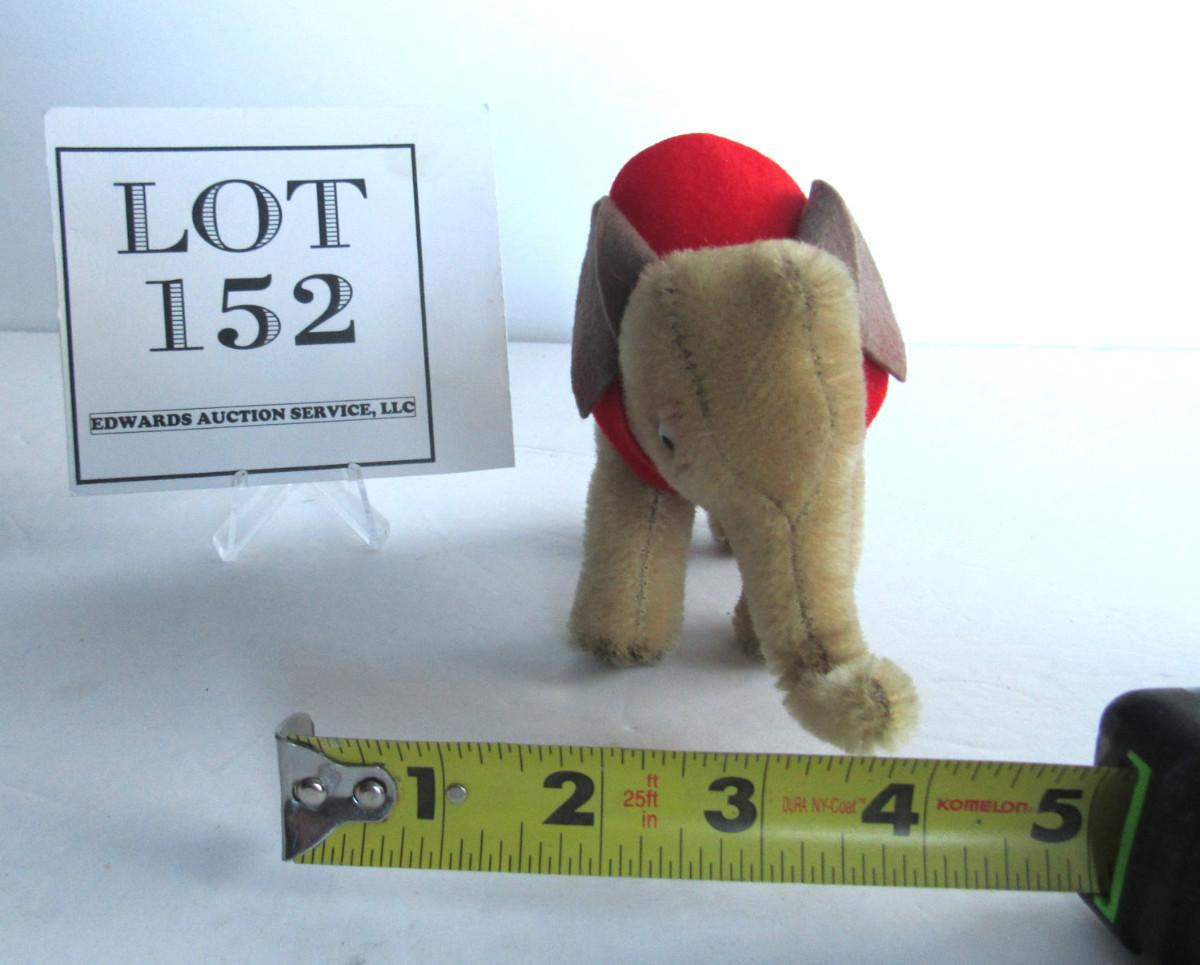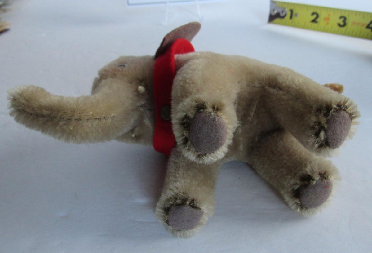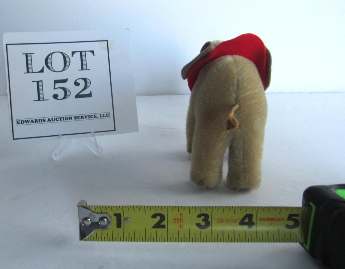 No button or tag. You can see in ear the slit where the button was. It is in excellent shape, looks complete, no smells. Shipping is available at actual cost plus $5 per box handling fee. See our terms for all details. All sales final.