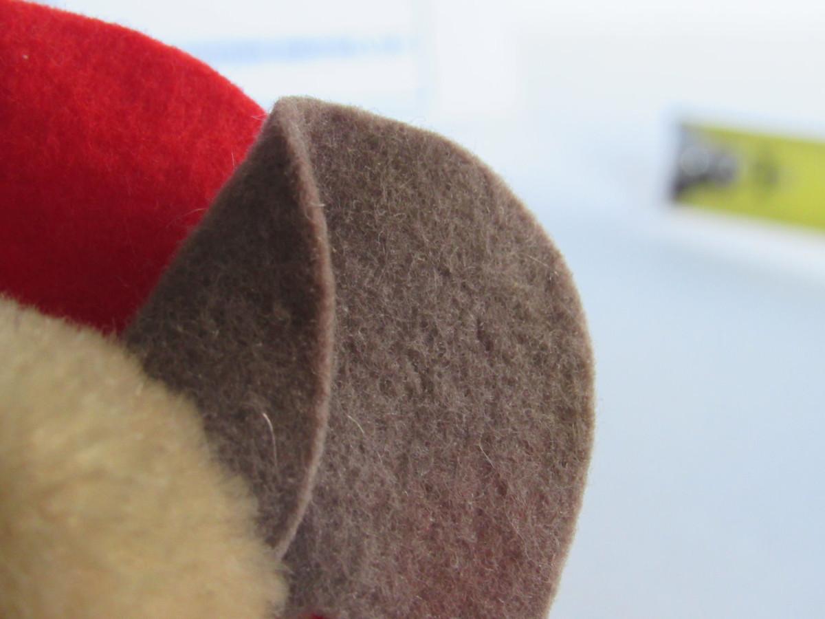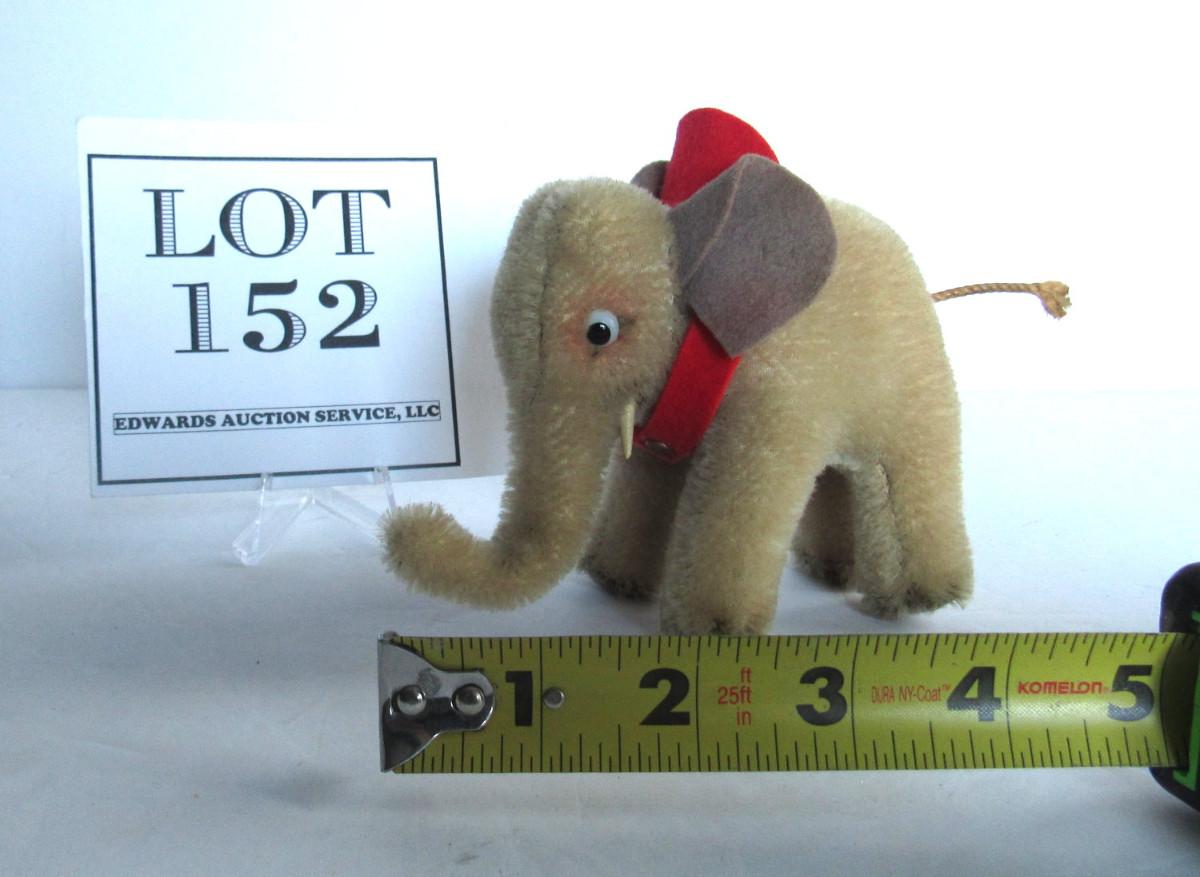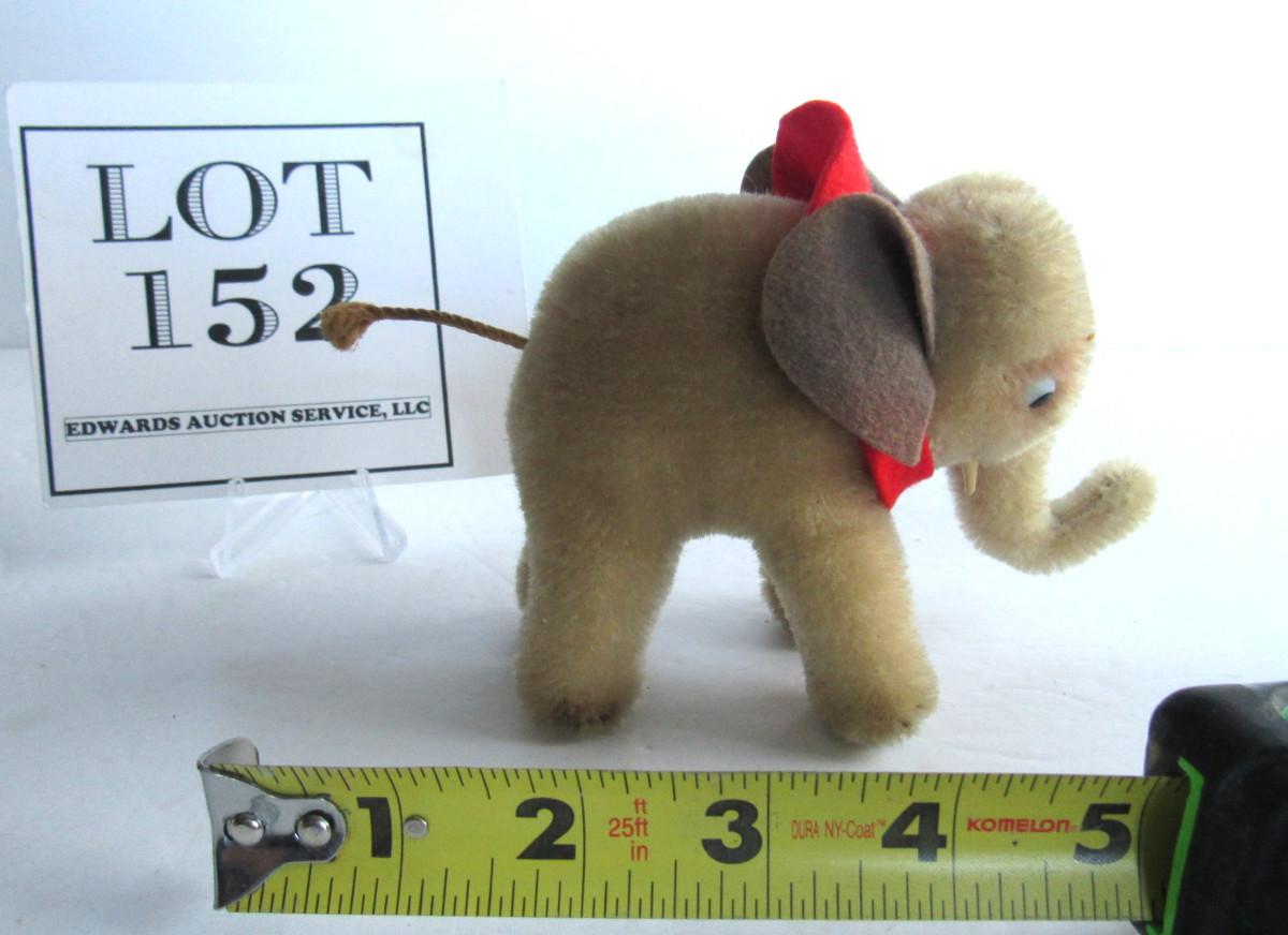 No button or tag. You can see in ear the slit where the button was. It is in excellent shape, looks complete, no smells. Shipping is available at actual cost plus $5 per box handling fee. See our terms for all details. All sales final.