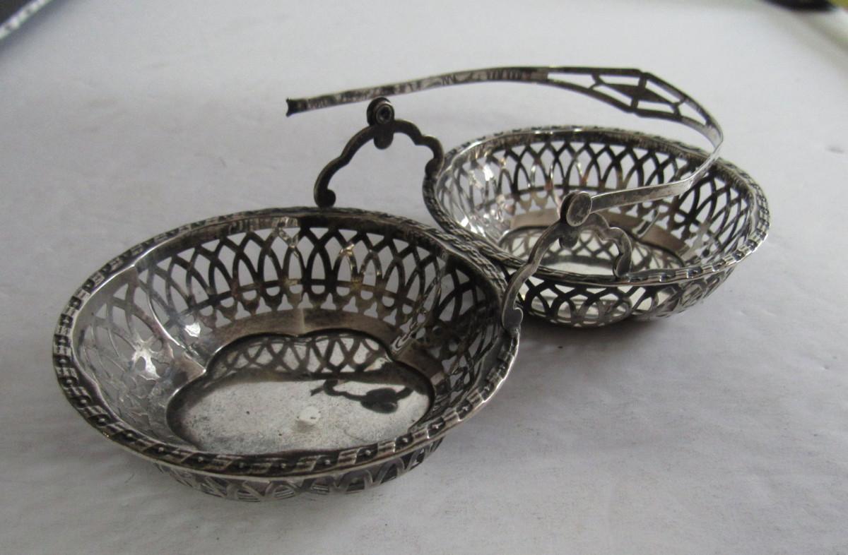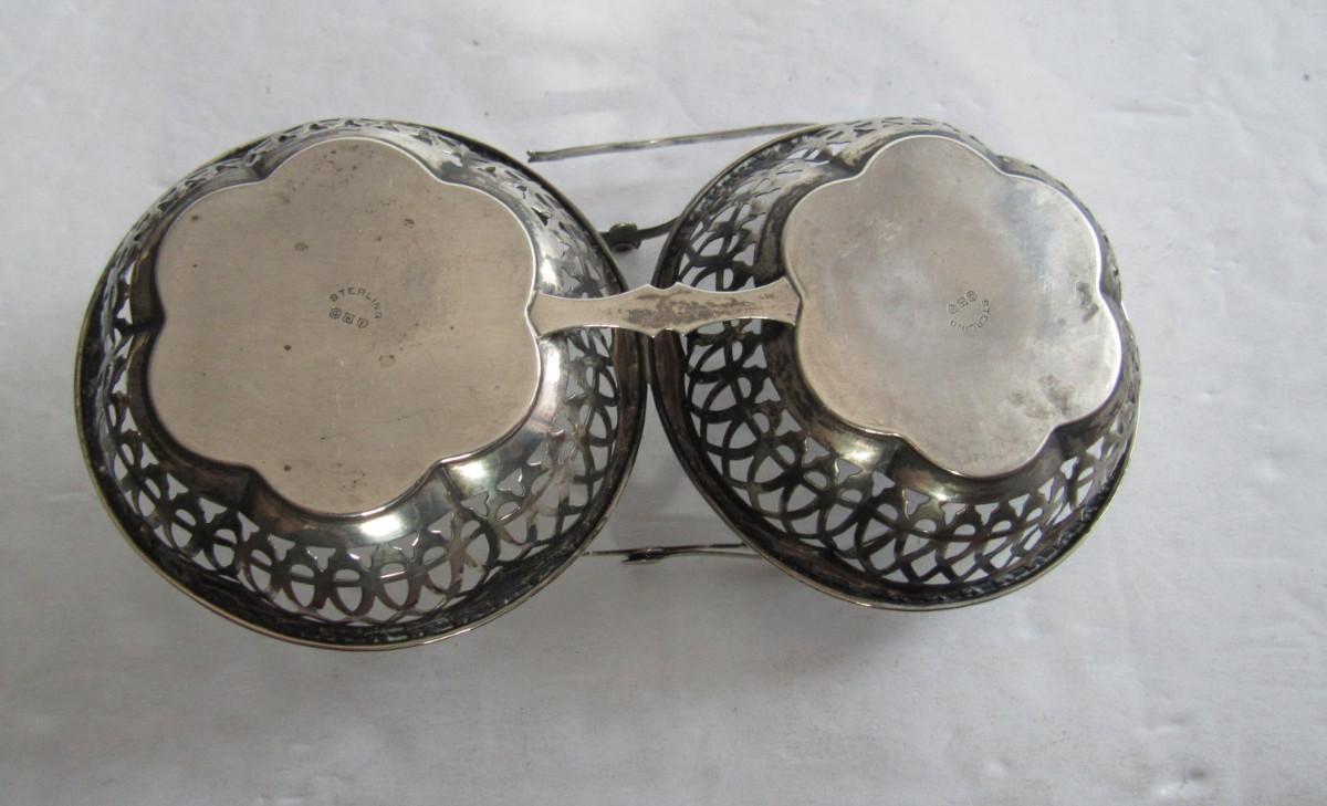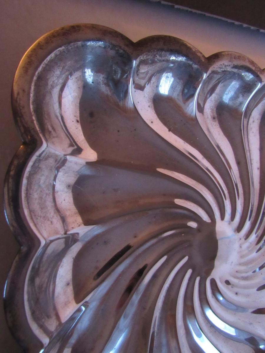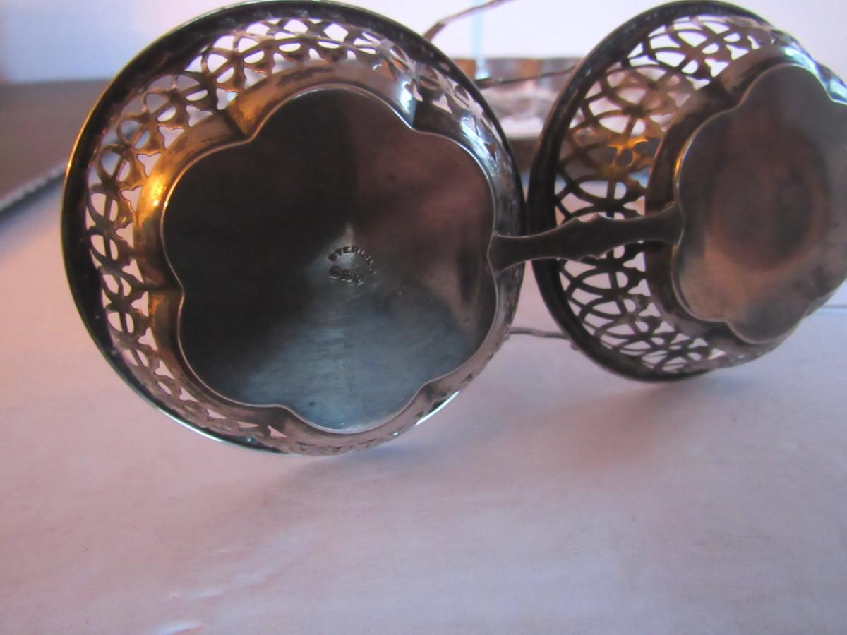 The tray has wear and a lot of dark spots and pitting. The sterling basket has a broken handle that needs to be re-soldered. It is nice otherwise and marked on bottom. Shipping available at actual cost plus $5.00 handling/supply fee per box. See our terms for details. All sales final.
