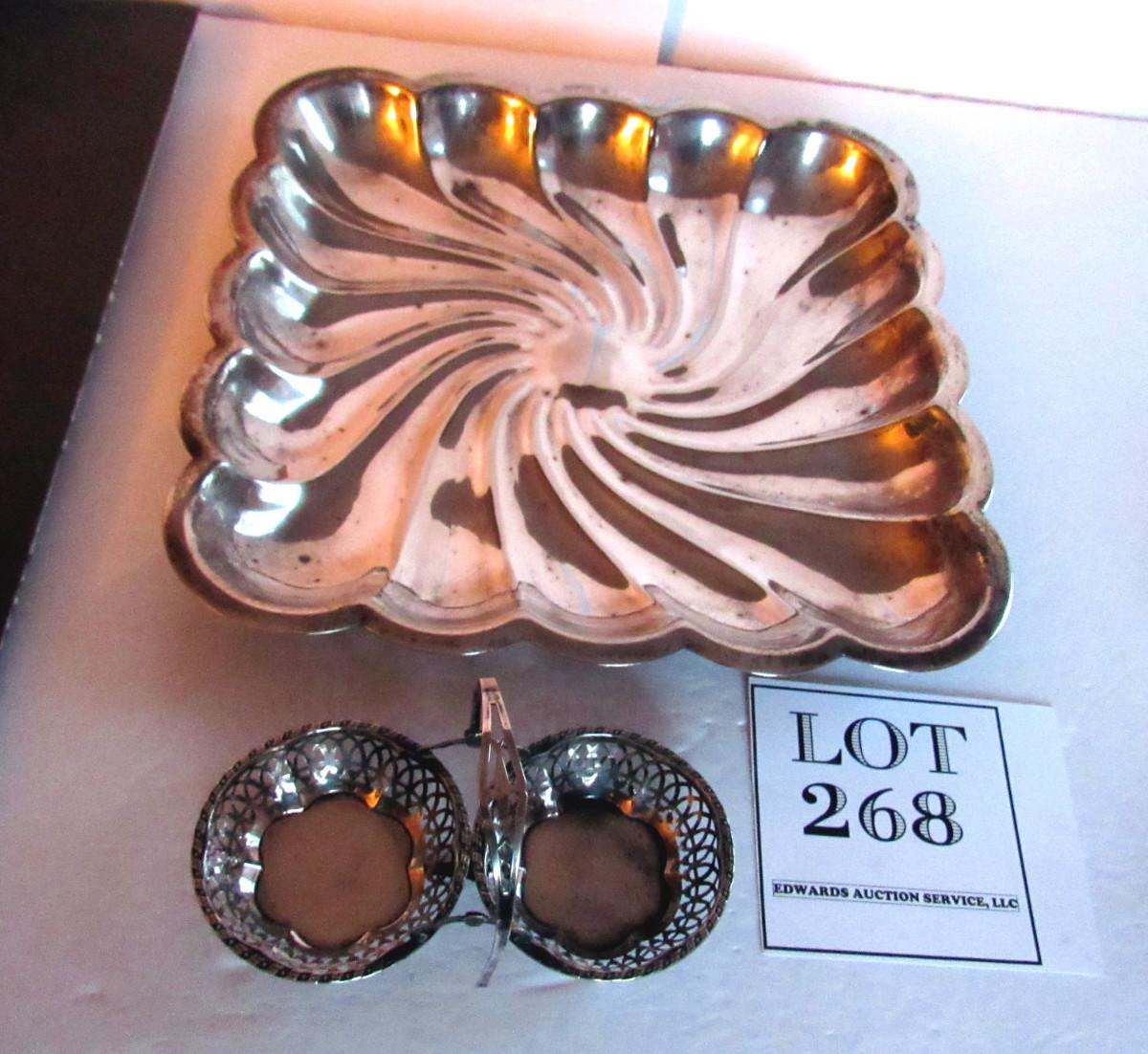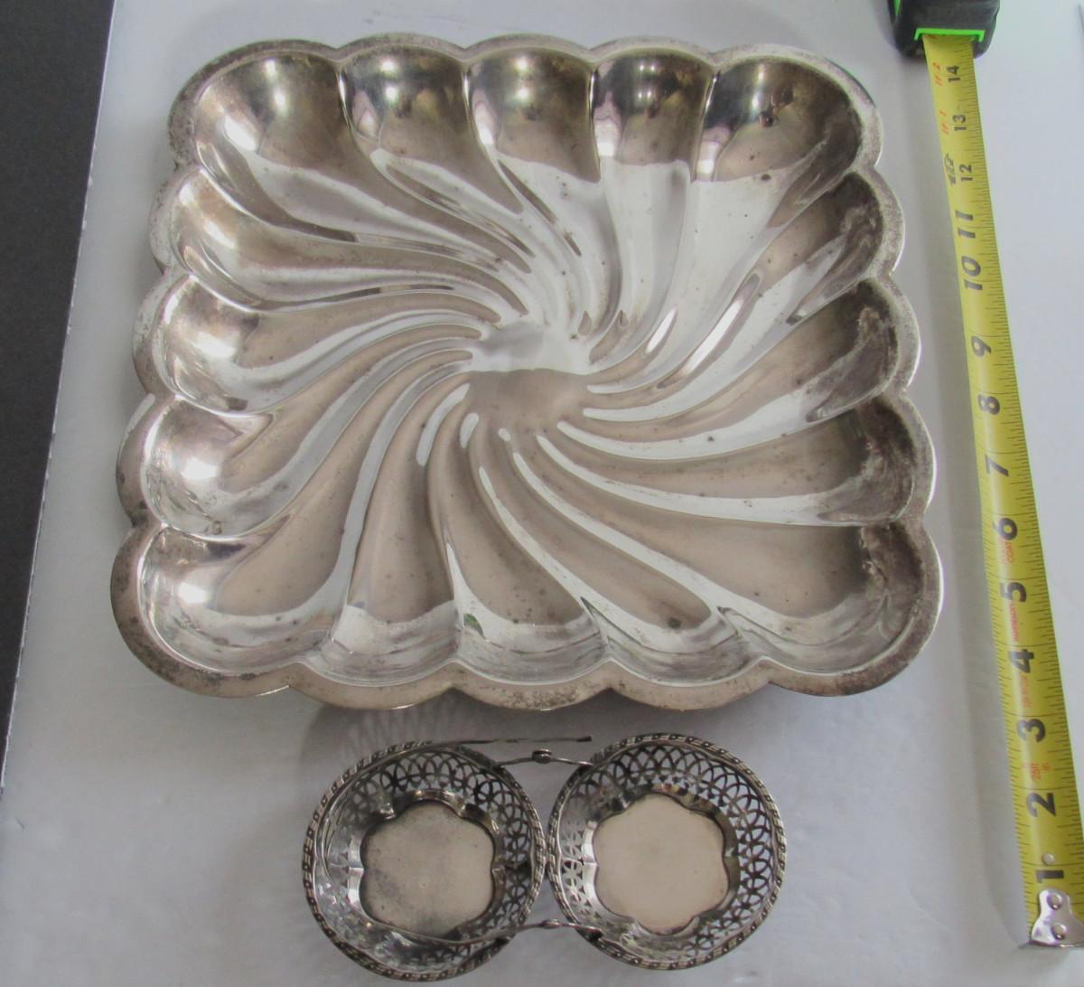 Old Sterling Silver Handled Dish and Silverplate Tray, Read Description