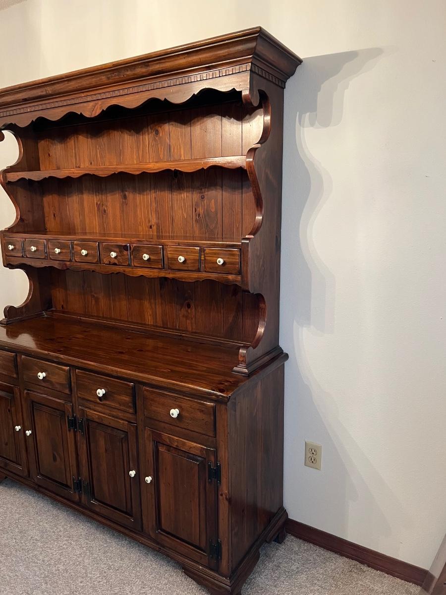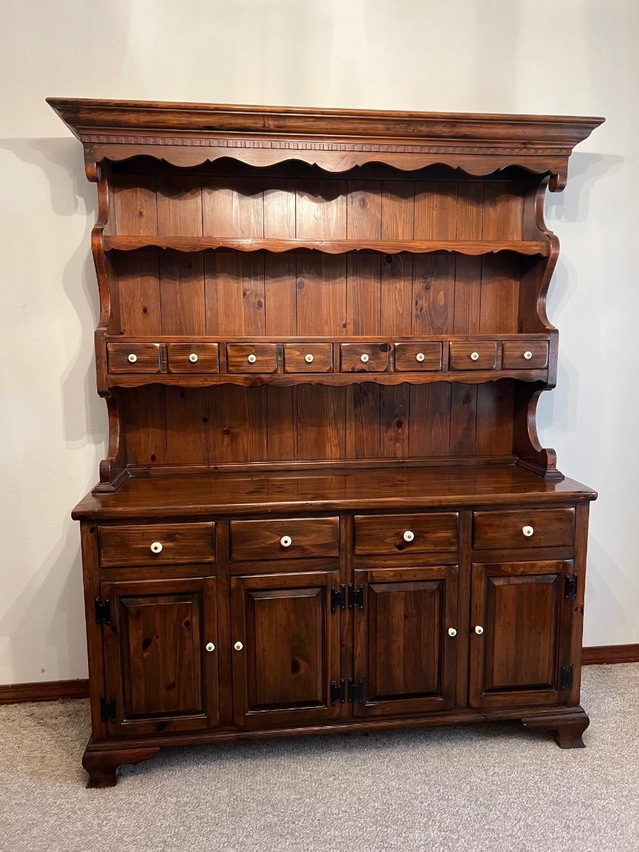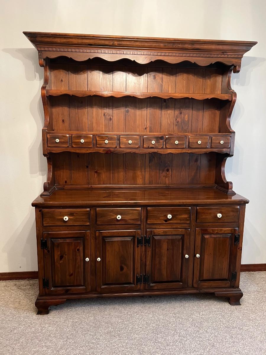 OLD TAVERN Solid Wood Buffet & Hutch Measures 75 inches tall, 66 inch wide, 18 1/2 deep. Top portion will have to be unscrewed from the bottom to transport (see pictures).