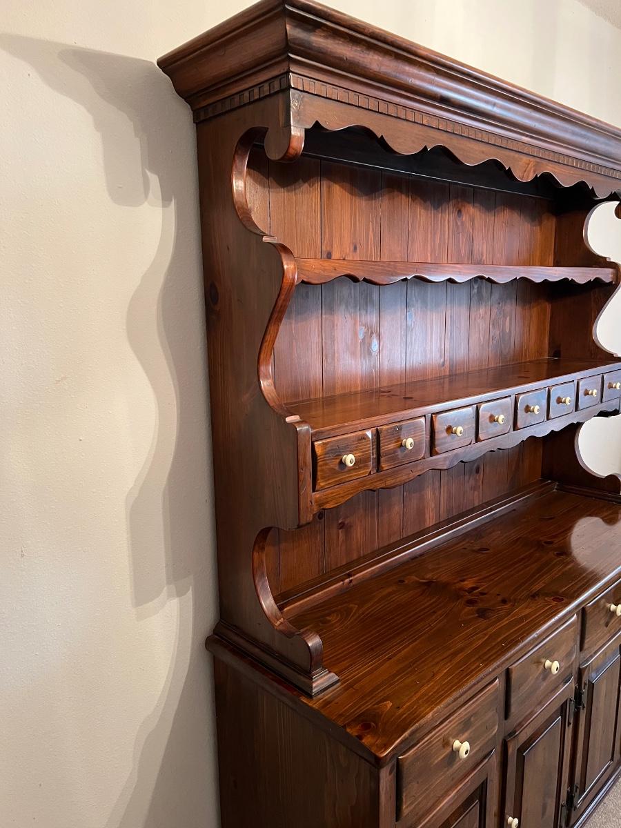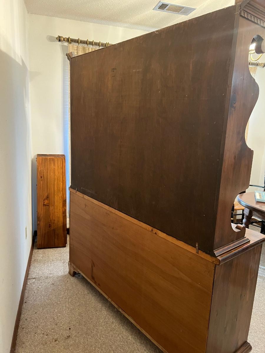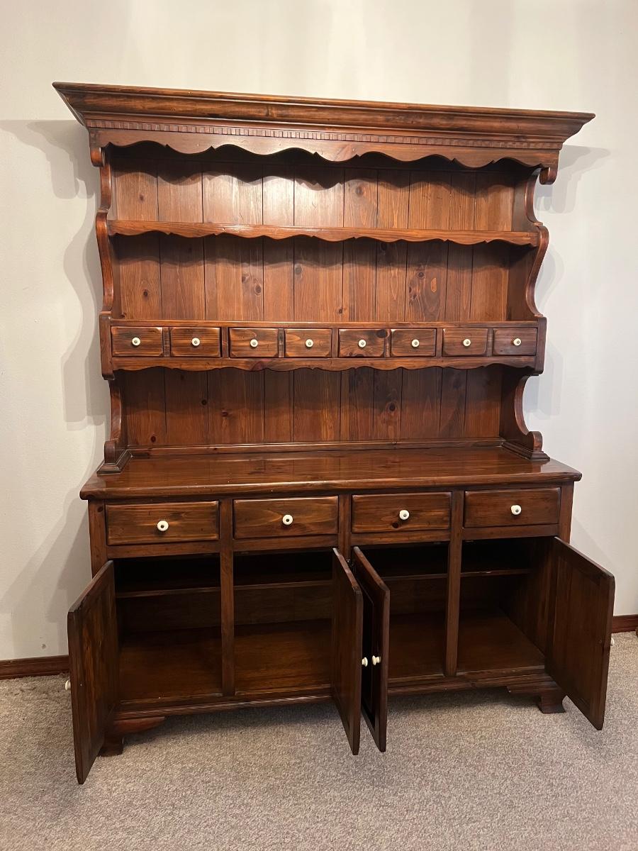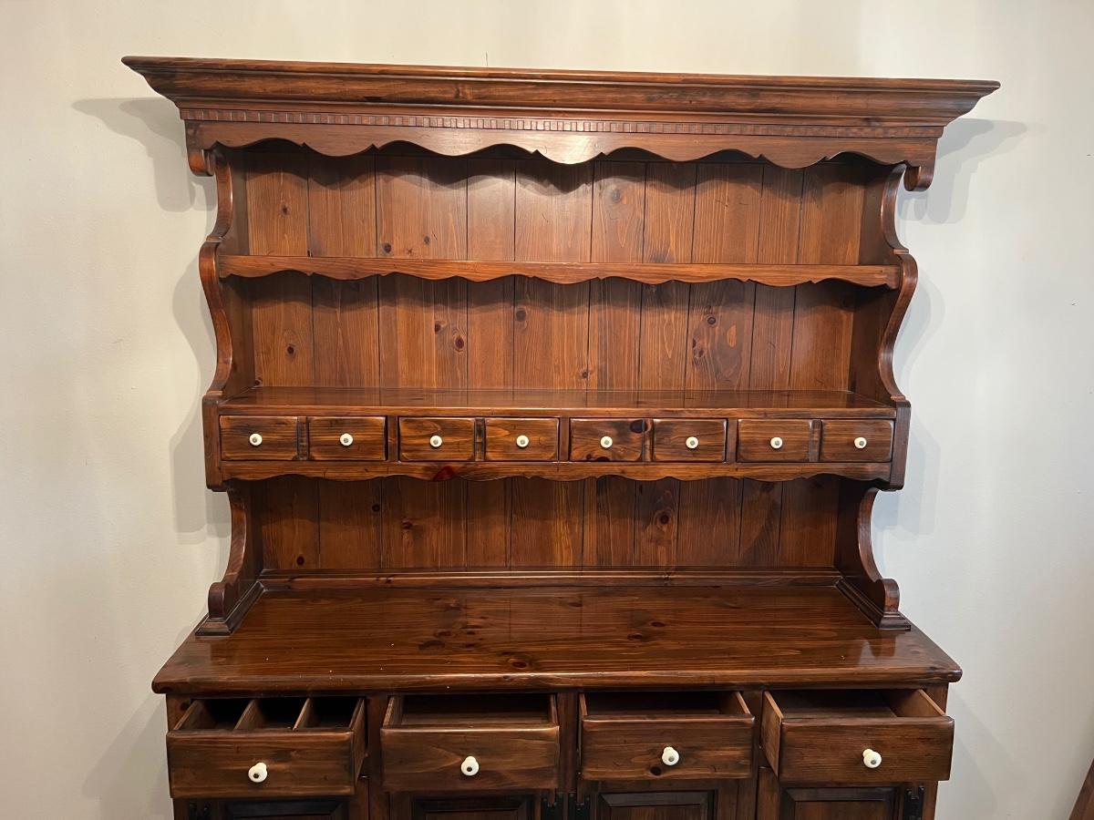 OLD TAVERN Solid Wood Buffet & Hutch Measures 75 inches tall, 66 inch wide, 18 1/2 deep. Top portion will have to be unscrewed from the bottom to transport (see pictures).