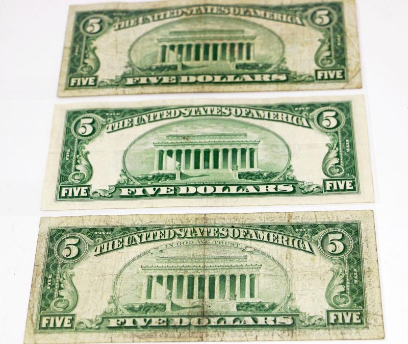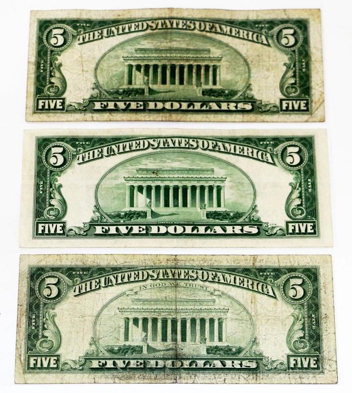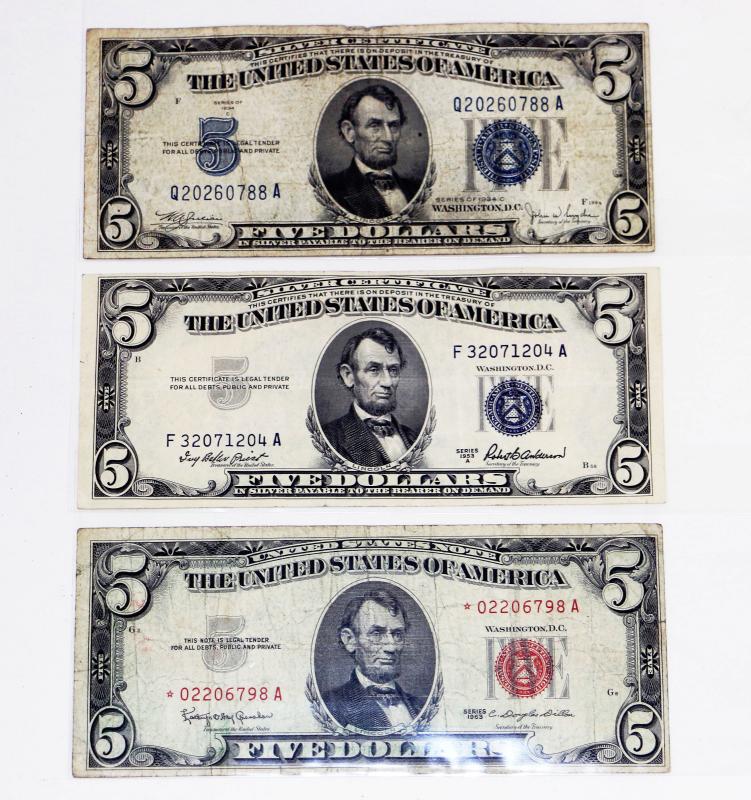 Old US Currency 3x $5 Five Dollars Notes 1934 1953 1963 - Rare Set #501-22