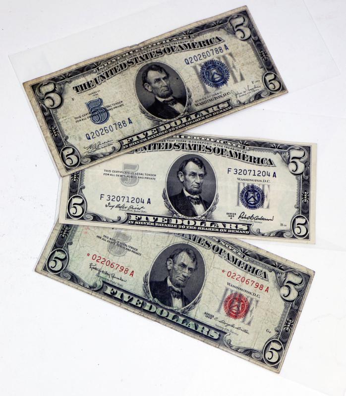 Lot of 3 Old US Currency, 3x $5 Banknotes, as seen on pictures.