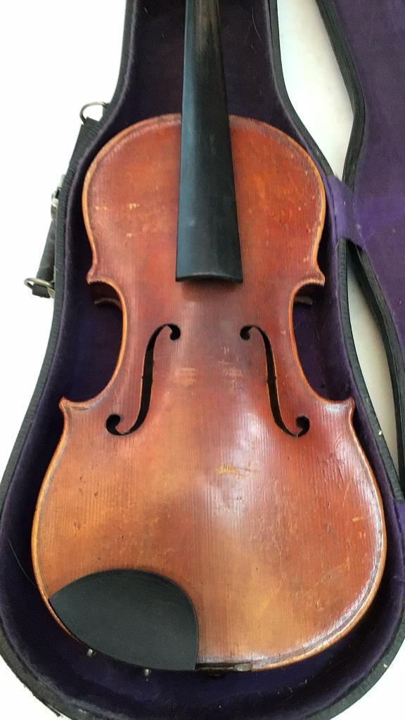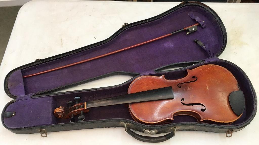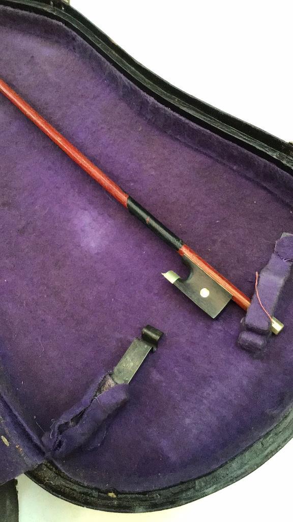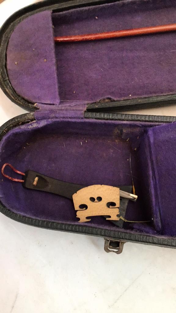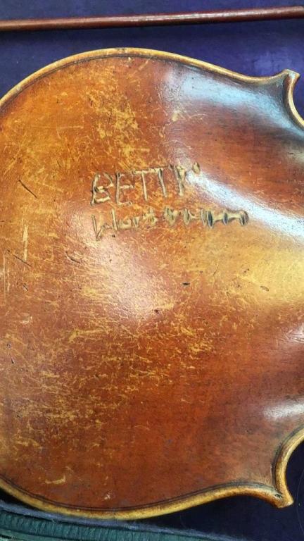 No Strings on violin, bow without horsehair, back has carved name of owner Line Item # 43