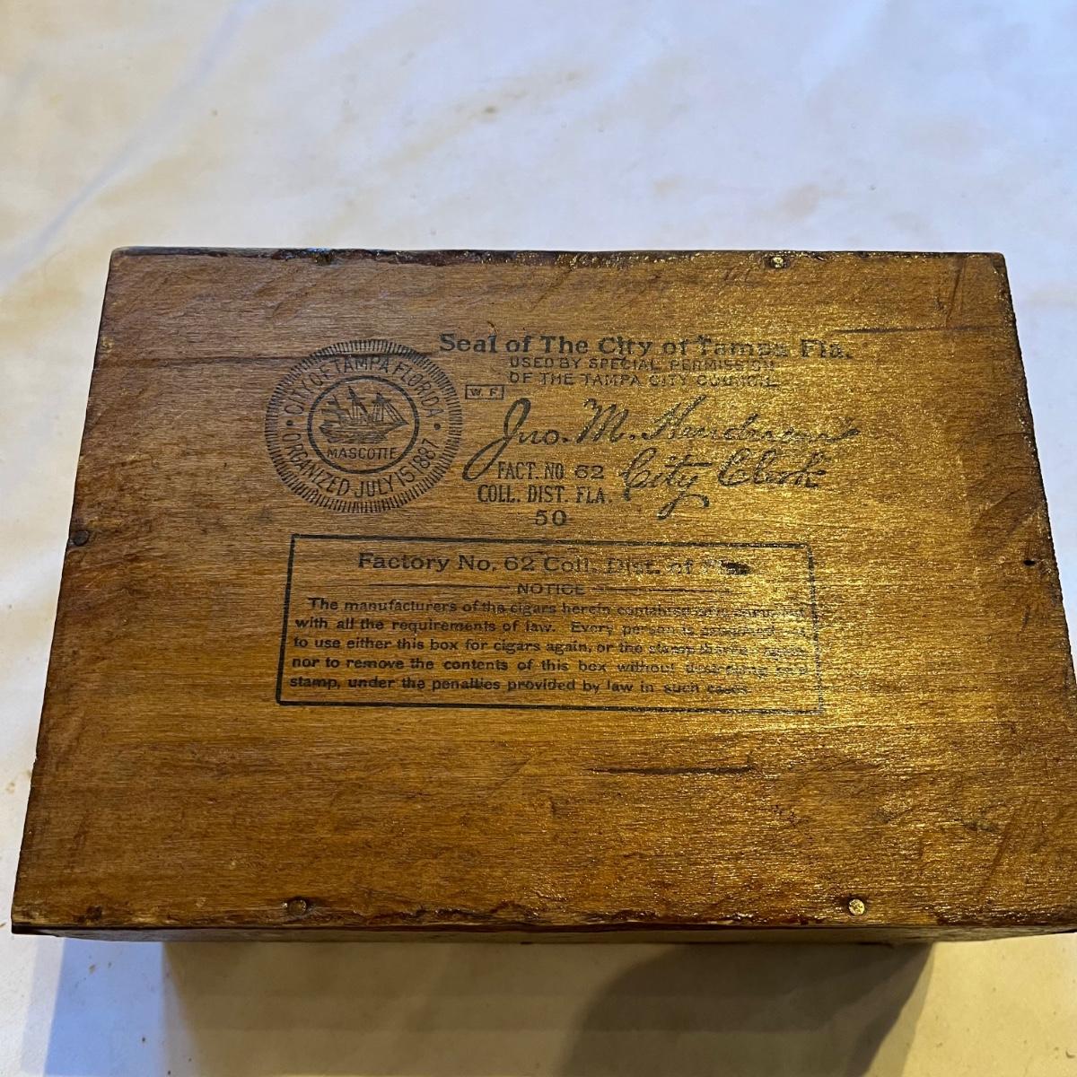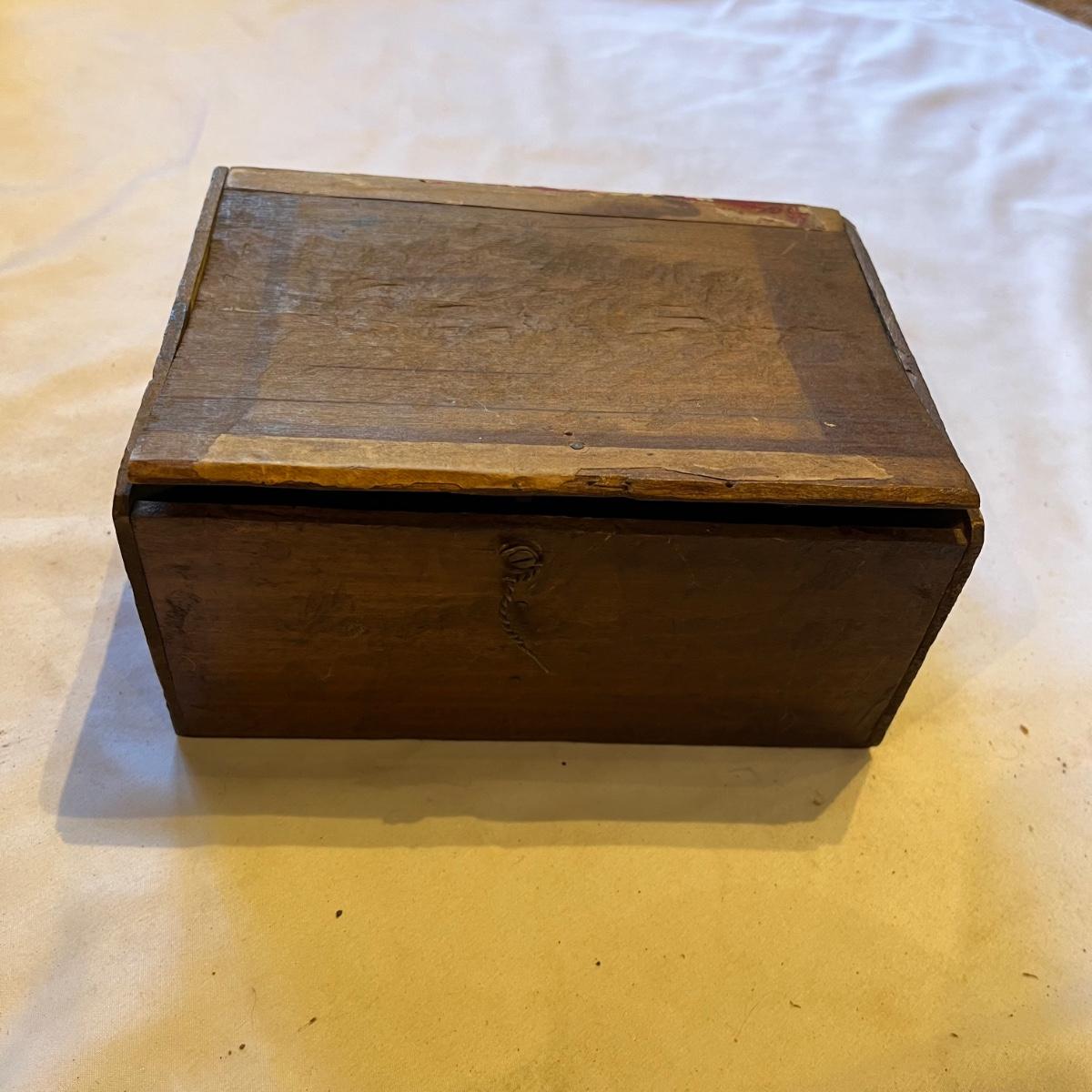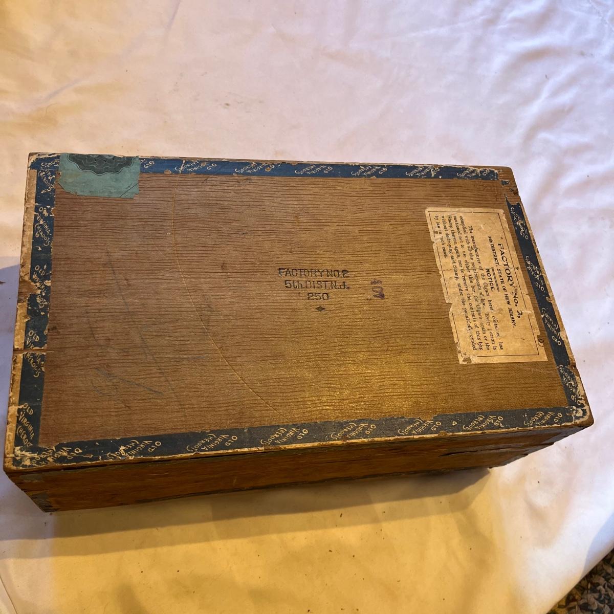 Lot includes a CHS wooden cigar box and a P. Whitlocks Old Virginia Cheroots wooden cigar box. Also includes a circular cardboard container With Asian lettering. Largest box measures 7.25” x 12” x 5”.