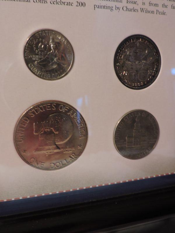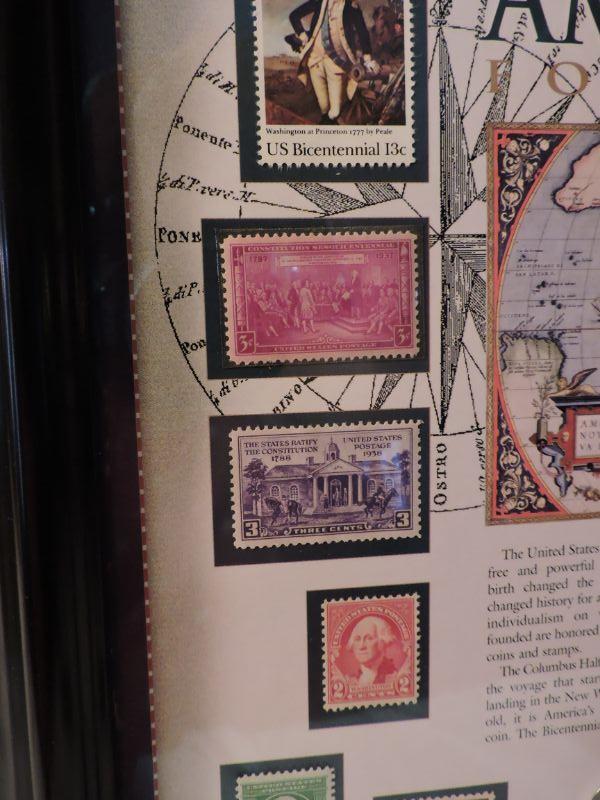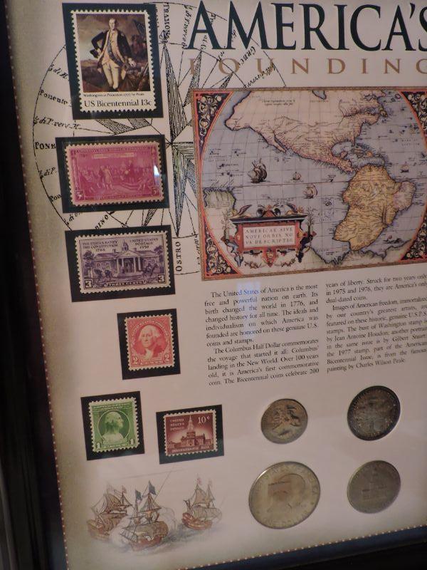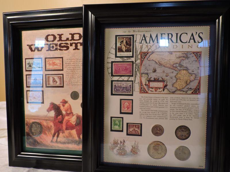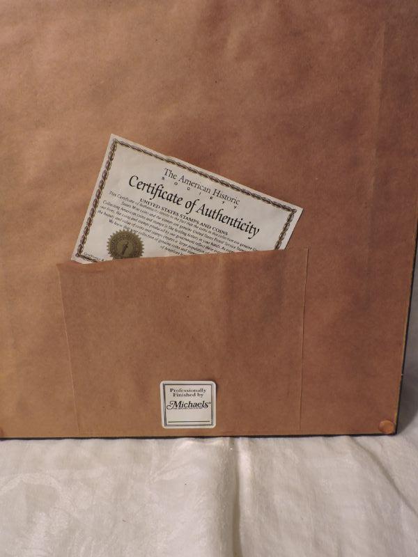 From American Historic Society. Two plaques with period coins and stamps. Includes Certificate of Authenticity. **Please read Terms and Conditions before placing a bid. Pick up is Wednesday, September 25 from 4pm to 7pm and Saturday, September 28 from 9am to 1pm in Williamstown, NJ. All sales are final. All sales are as is, where is. Please review all photos. Any props included in photos are not included in listing. All measurements are approximate.