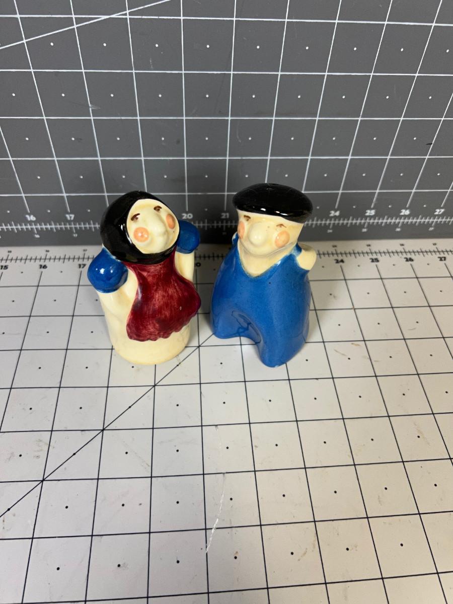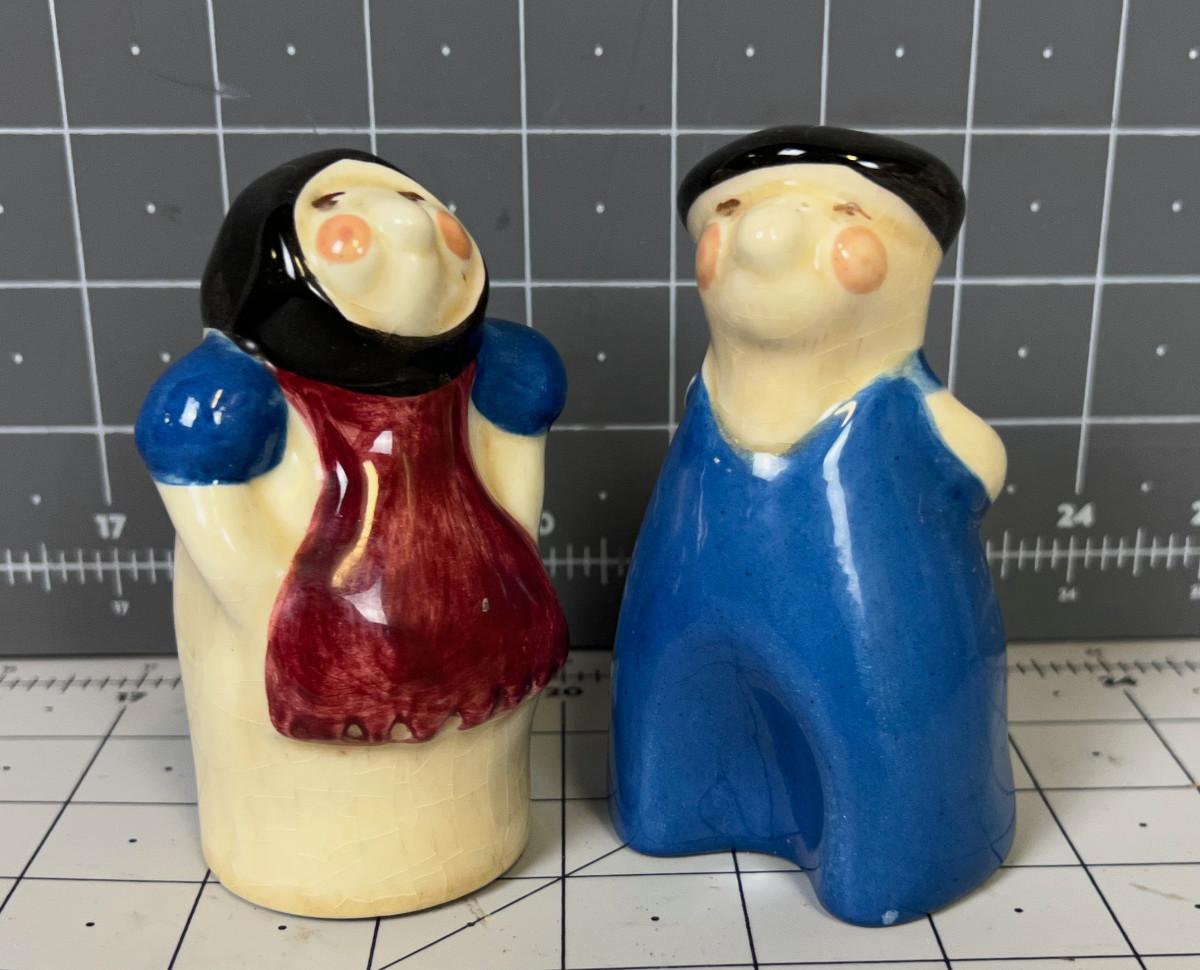 Old Woman and Man Art Studio Pottery Salt & Pepper