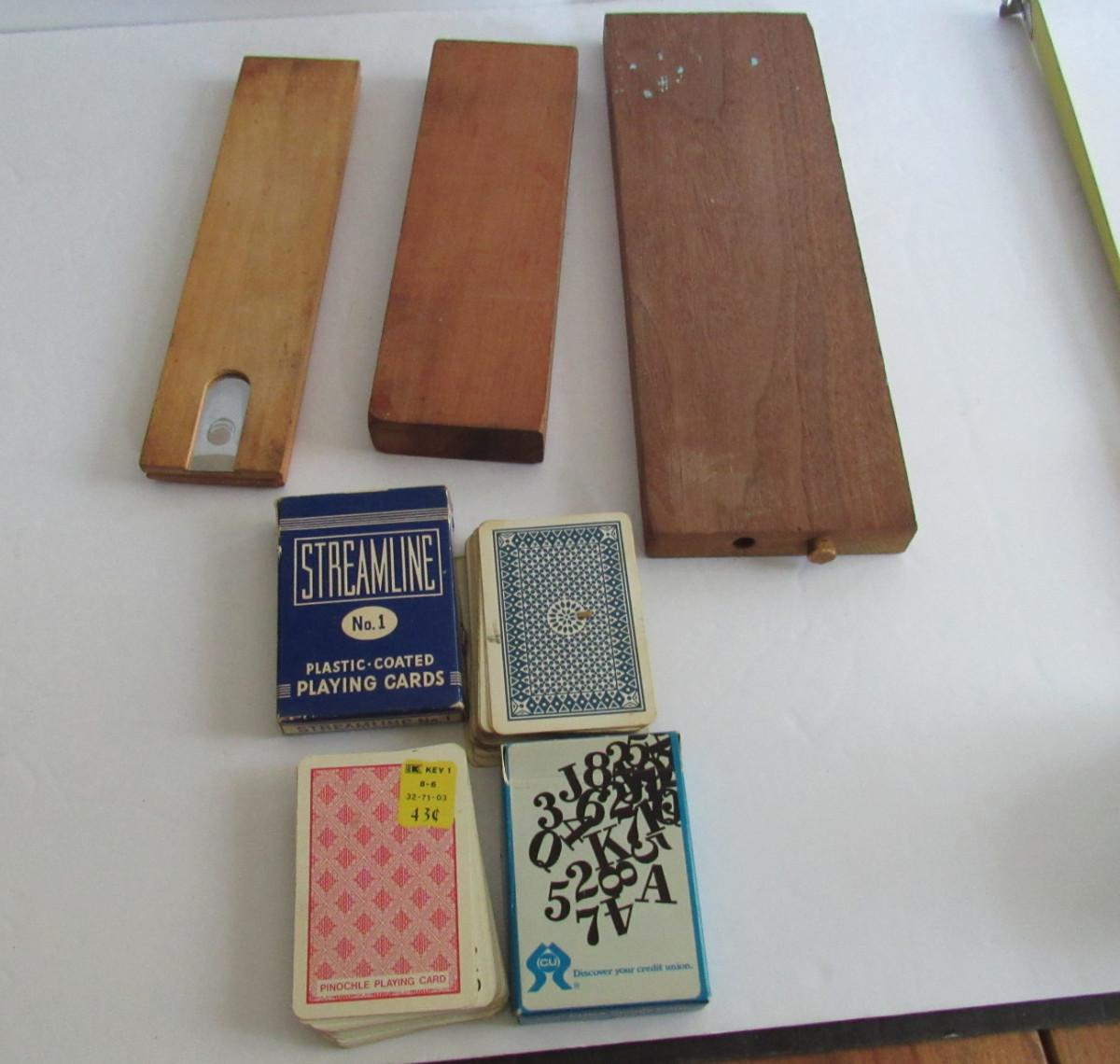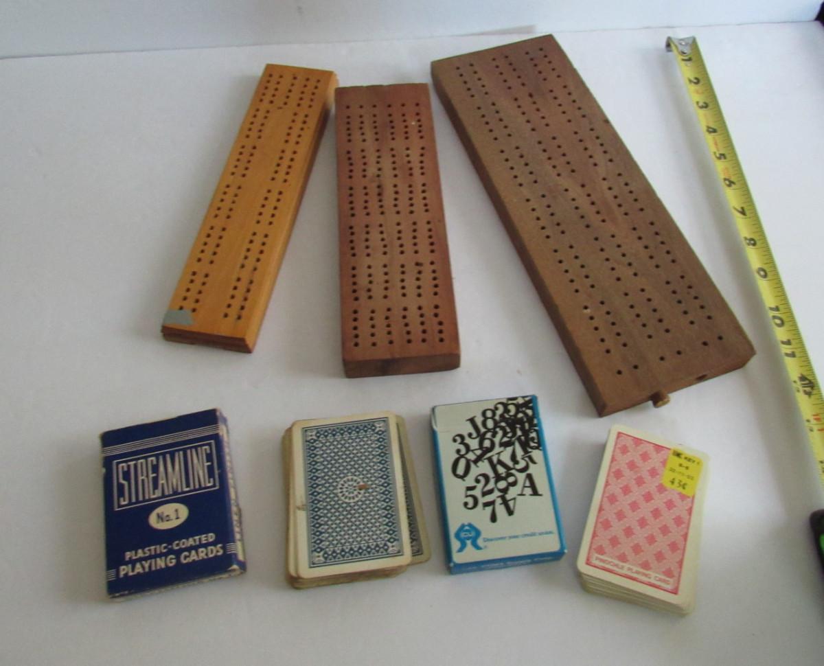 Old Wood Cribbage Boards and Cards