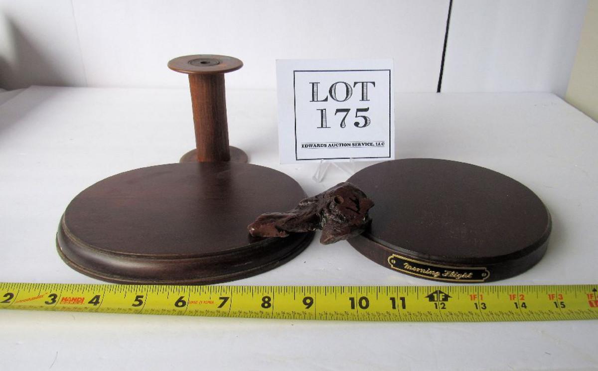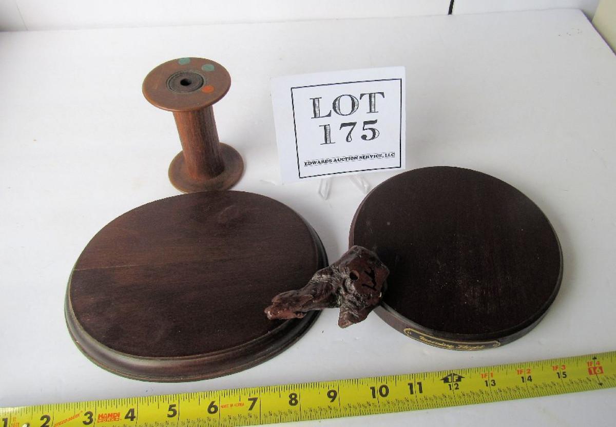 Old Wood Spool, 2 Wood Display Stands, 1 Small Wood Stand For??