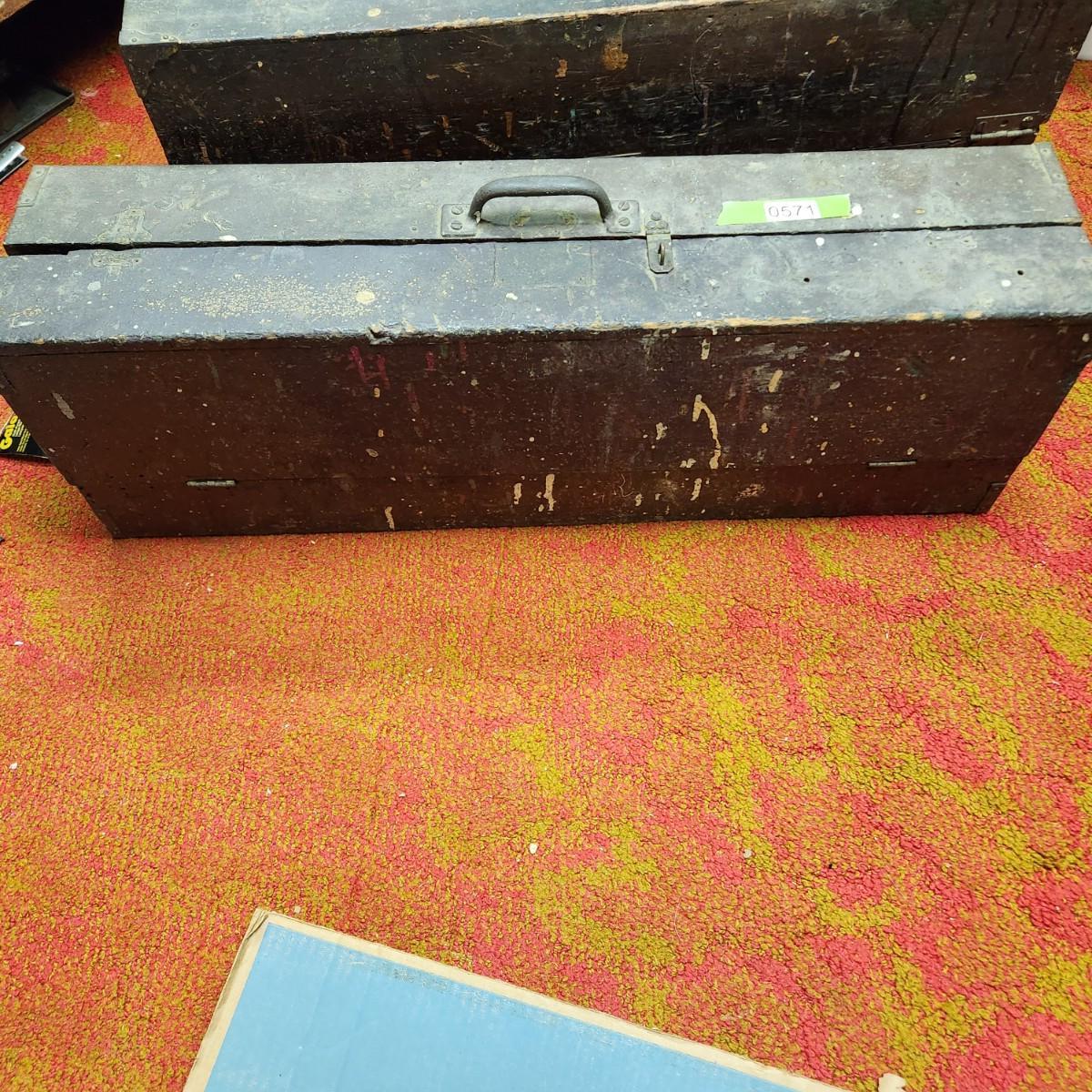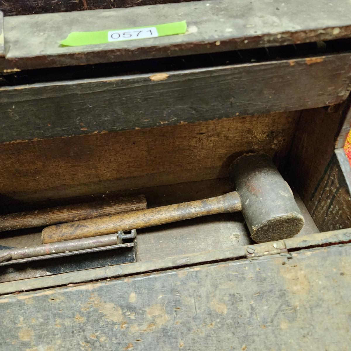 Old Wood Tool Box with Tools Drill Bits lot 571
