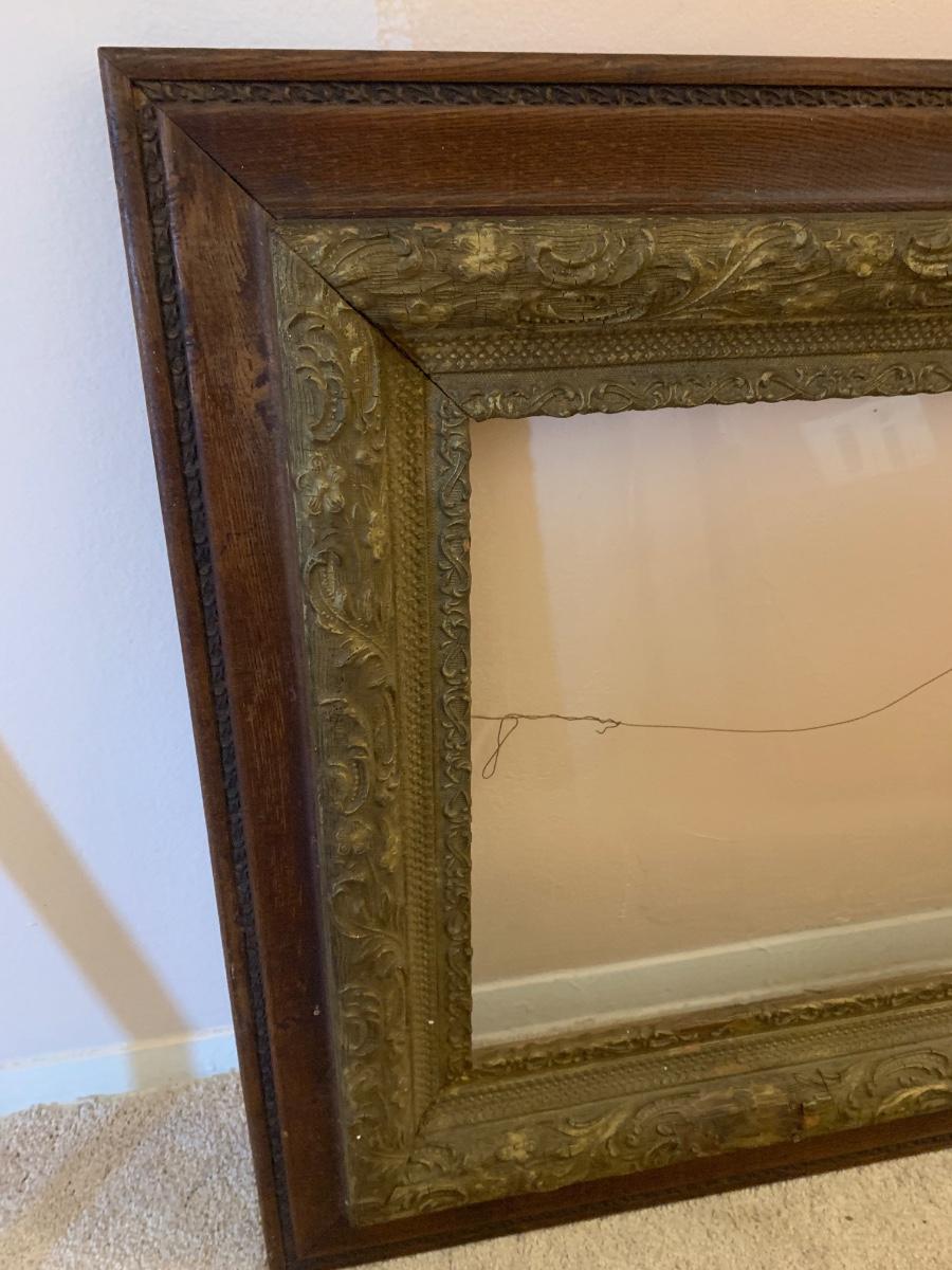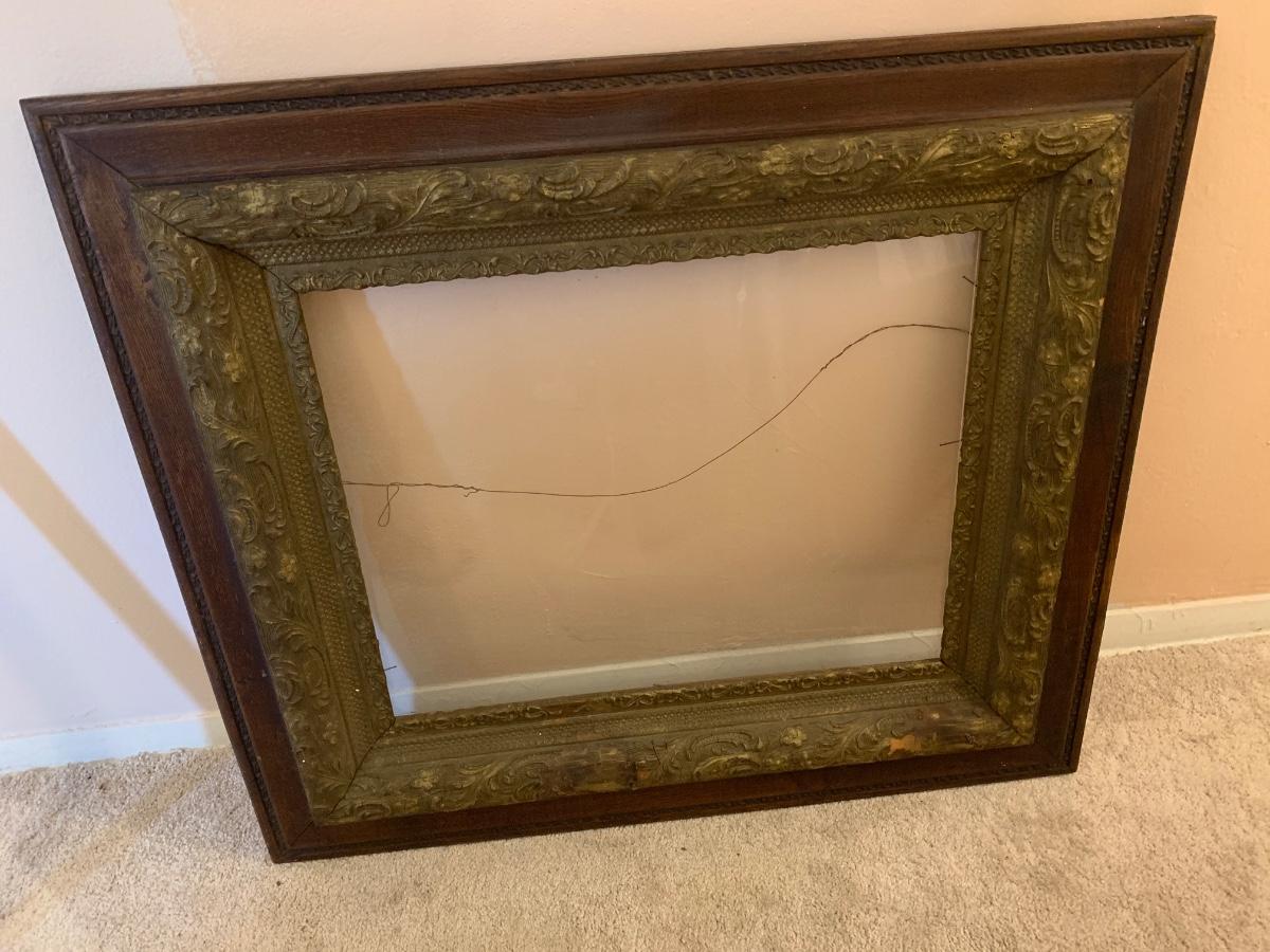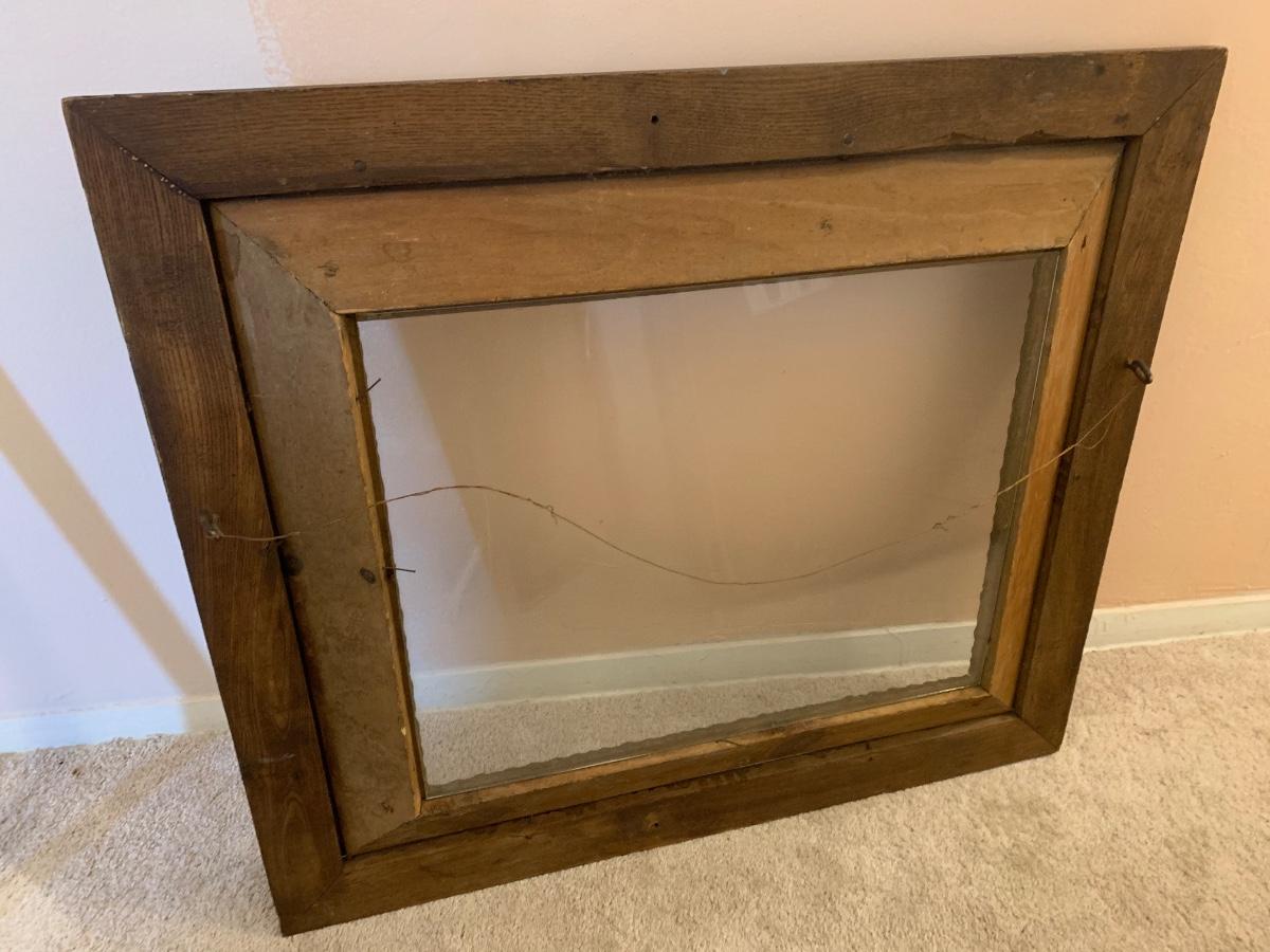 Old wooden frame with glass & wire 30"W 28"H