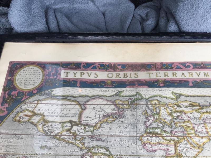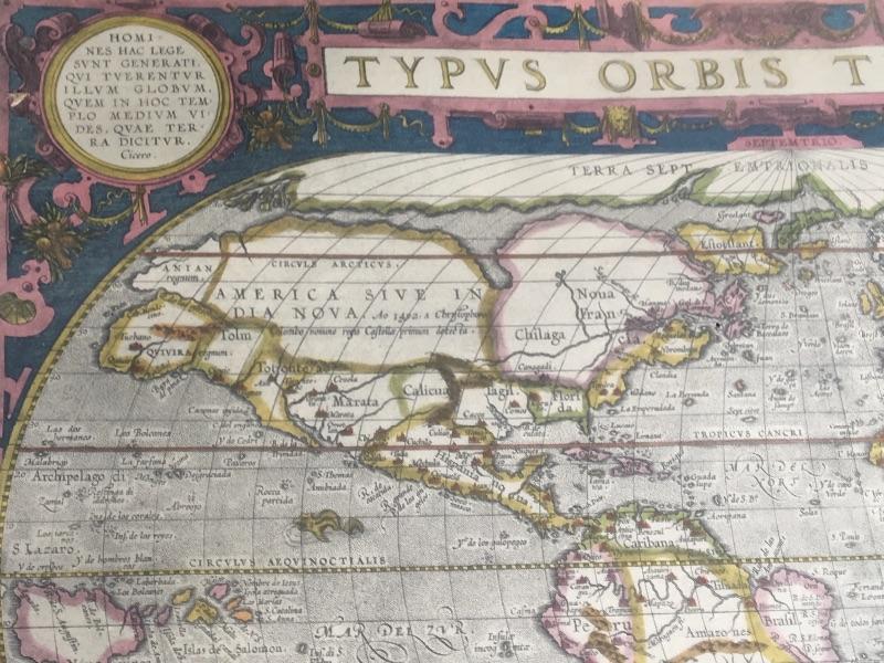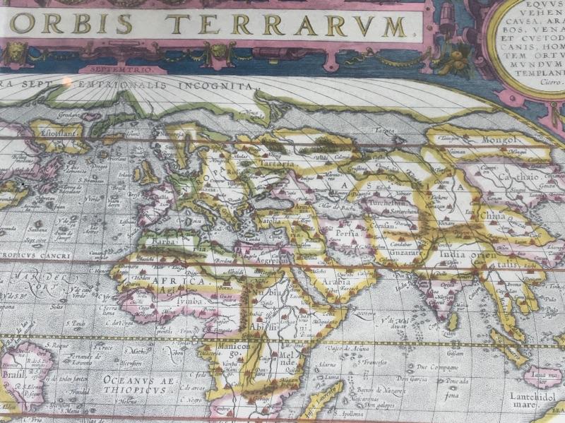 Penn Prints, New York global map from the Abraham Ortelius Original done in 1590.