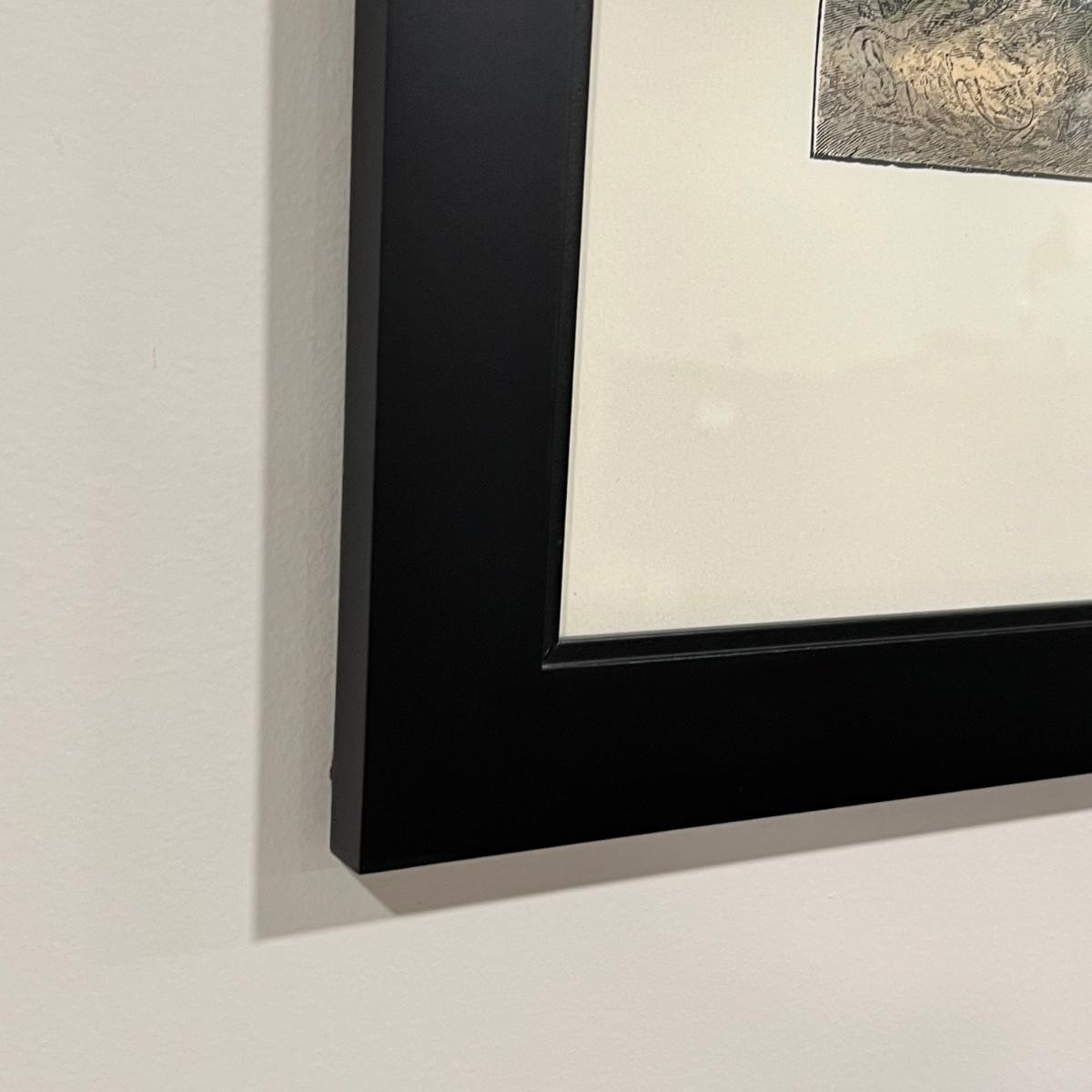 Two Old World Prints are under glass and mounted in matching black resin like frames. Frames measure 21” x 27”H. See photos for printed signatures.