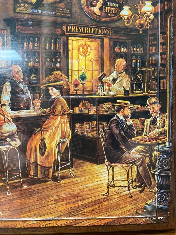 Olde Time Drug Store picture. Artist interpretation not a real photo. Not sure where it came from. It is mounted in a plaque frame, looks self done by previous owner.