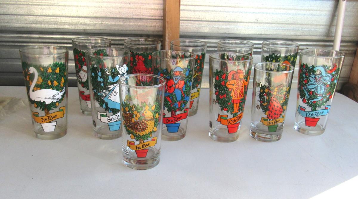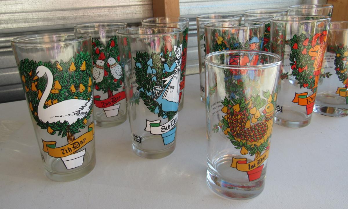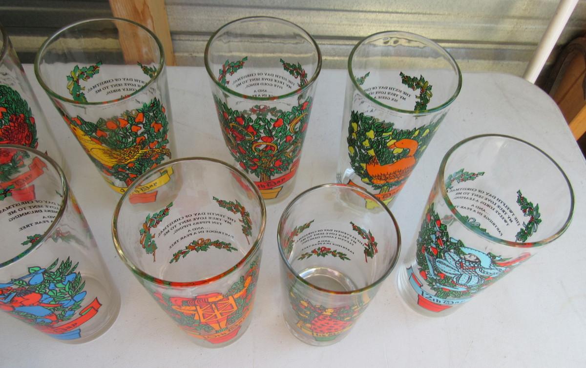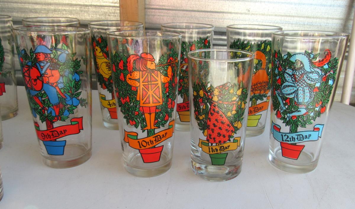 Older 12 Days of Christmas Glass Tumblers, Read Description