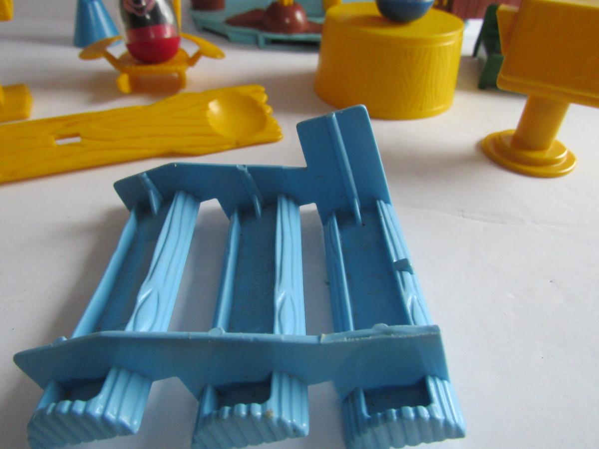 Most in good shape. The teeter totter is missing the base. I have no idea what the tall blue thing is. The bleachers has a broken leg. Rest seem to be fine with minor wear. Shipping available at actual cost plus $5.00 per box handling fee. See our terms for details. All sales final.