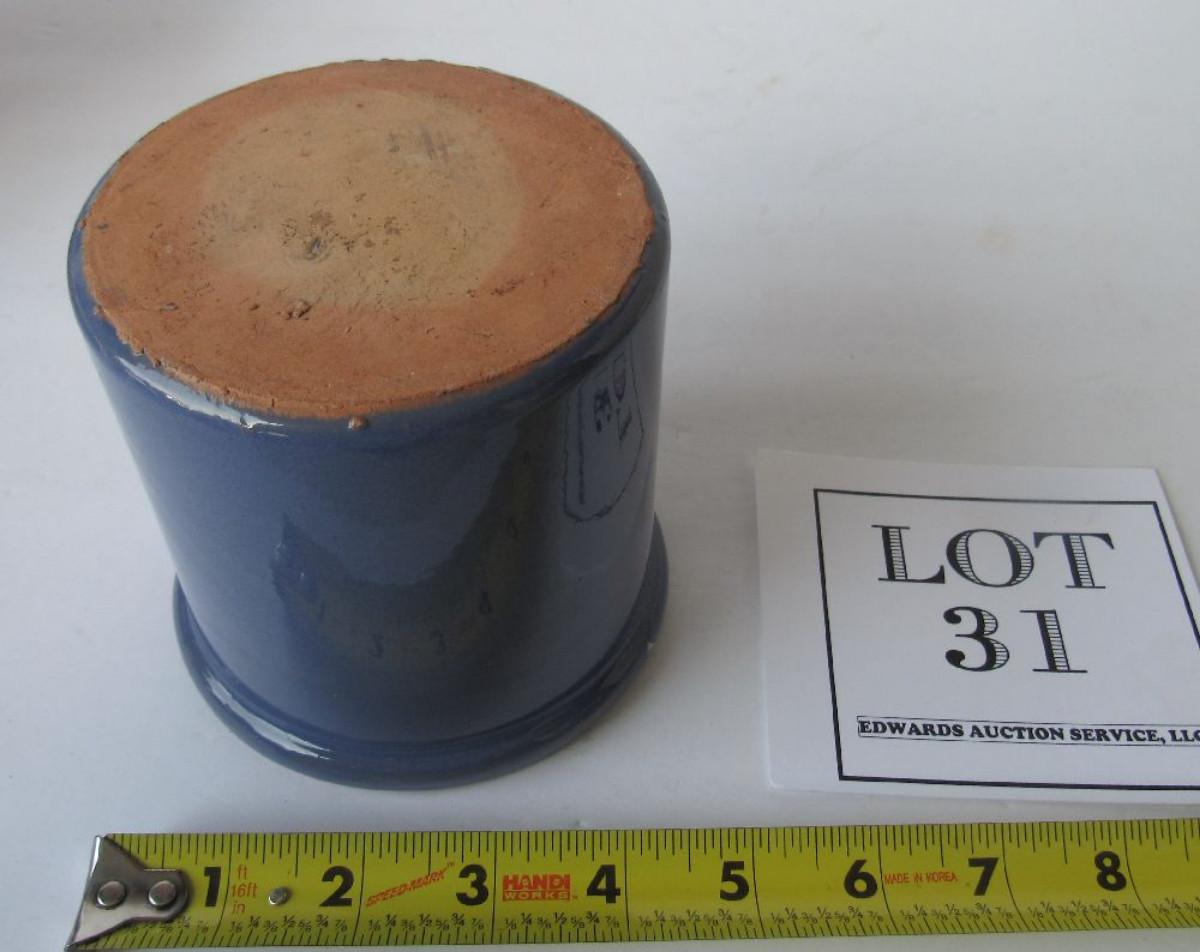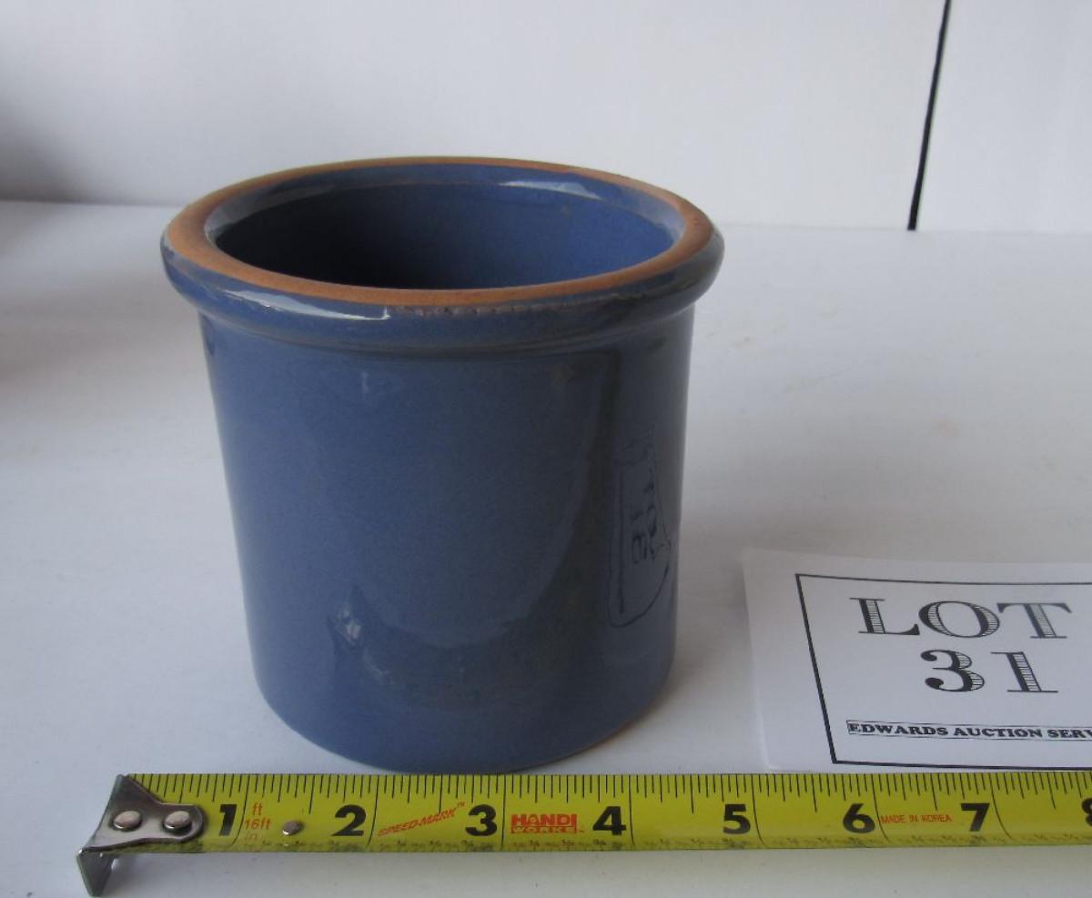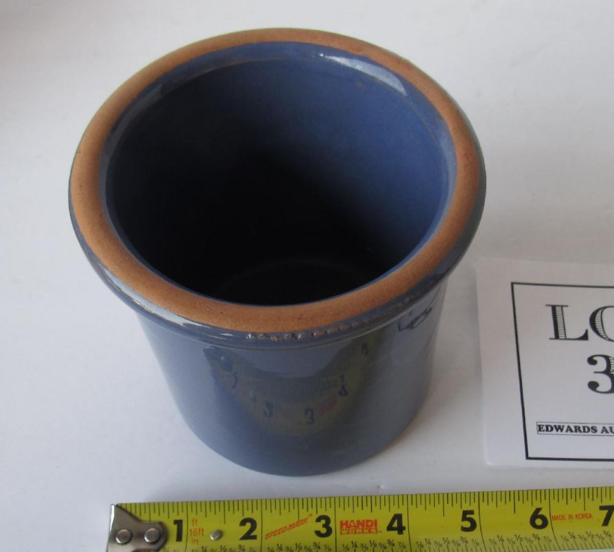 Older Blue Glazed Kitchen Crock, Small 4 3/4" Wide