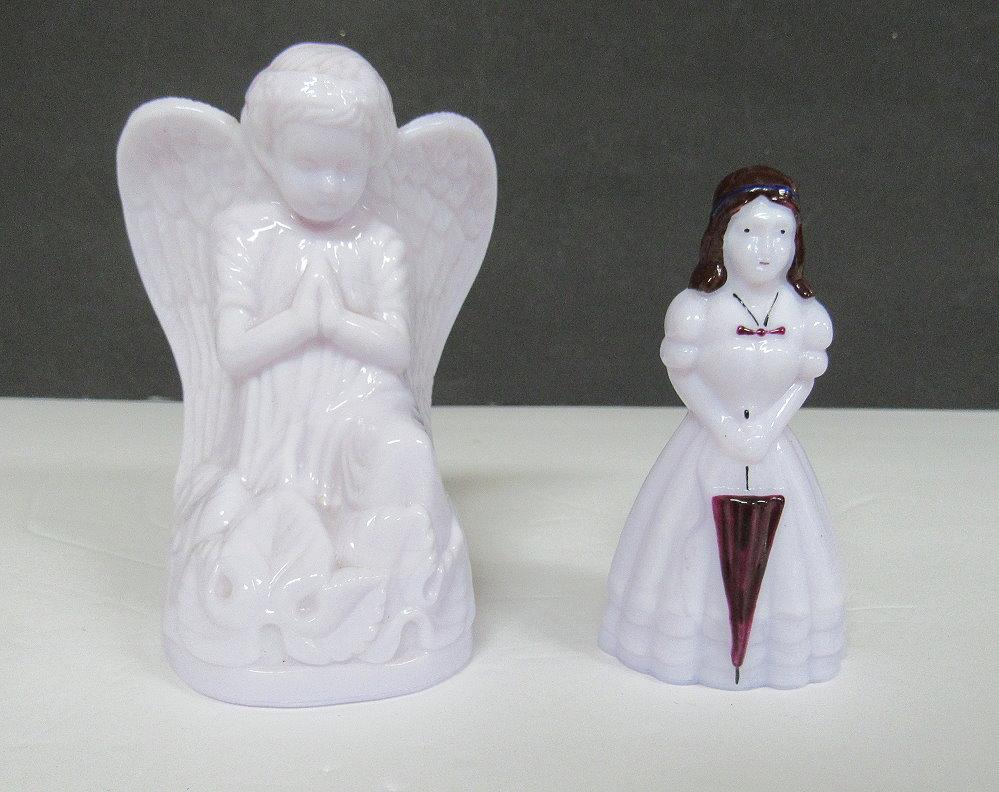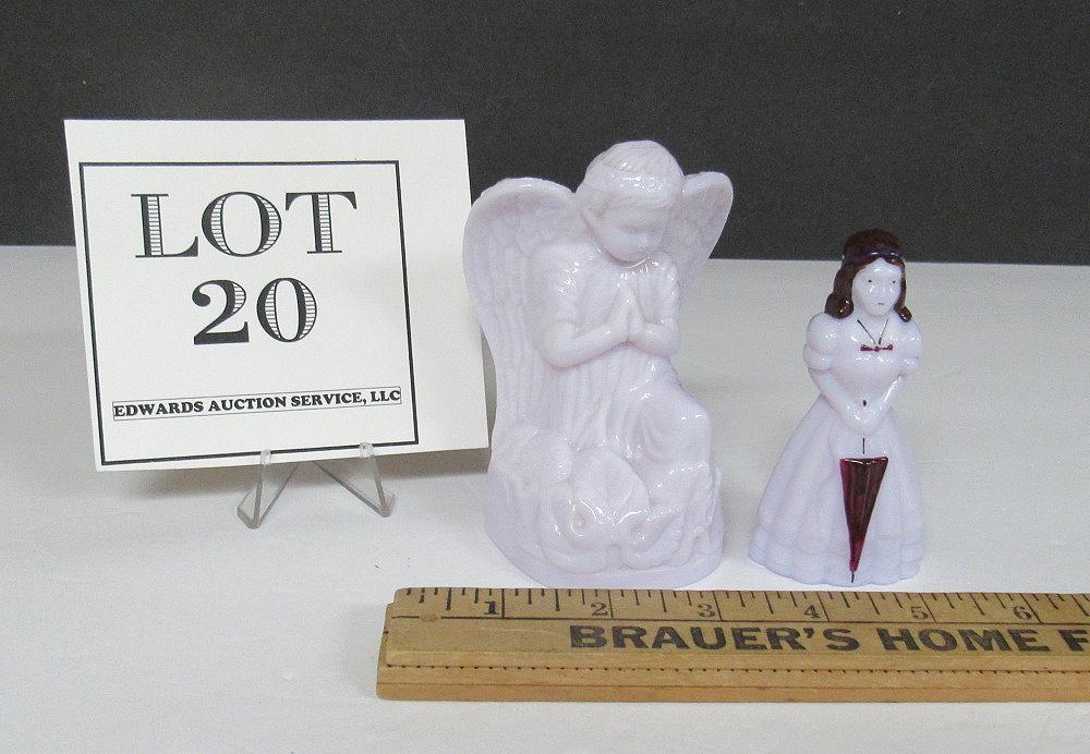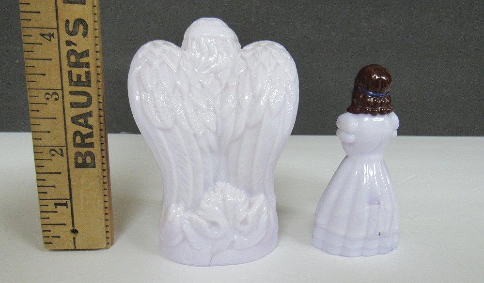 Older Boyd Glass Angel and Hand Painted Lady Figurine, Very Pale Lilac Color