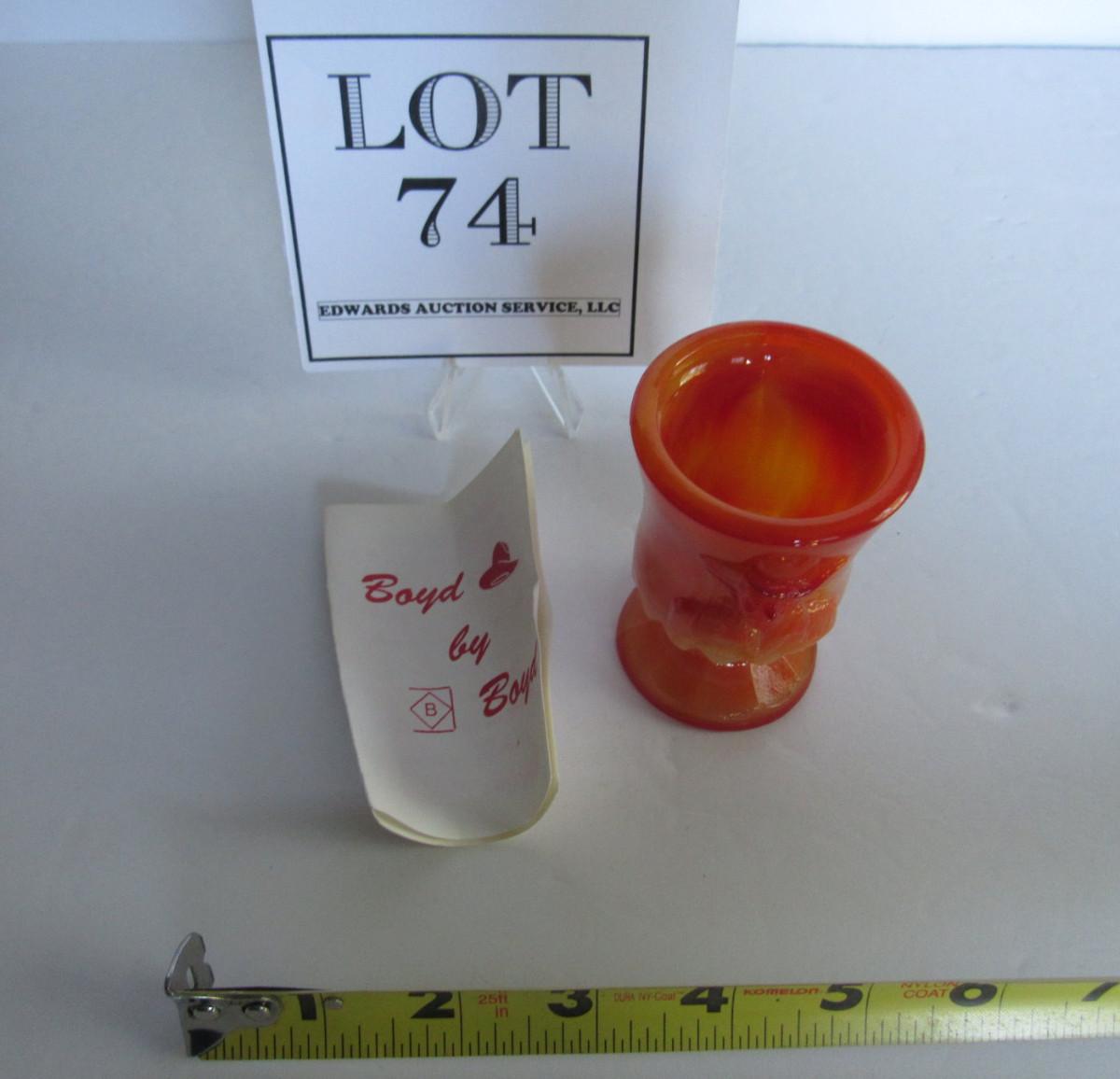 Older Boyd Glass Hoppy Toothpick Holder, Limited 453/1000, Orange Slag