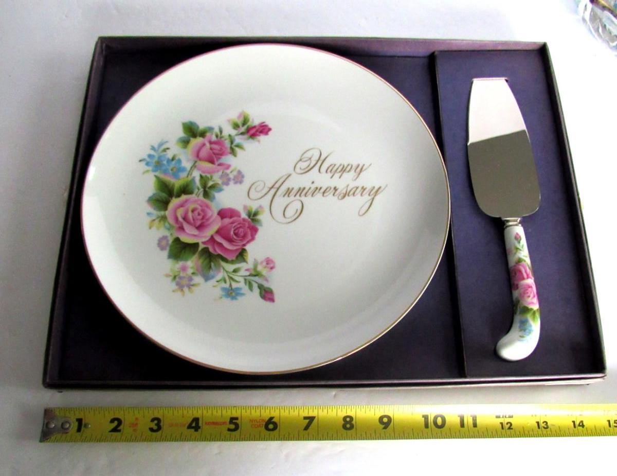 Older Porcelain House of Prill Anniversary Cake Plate and Server Set