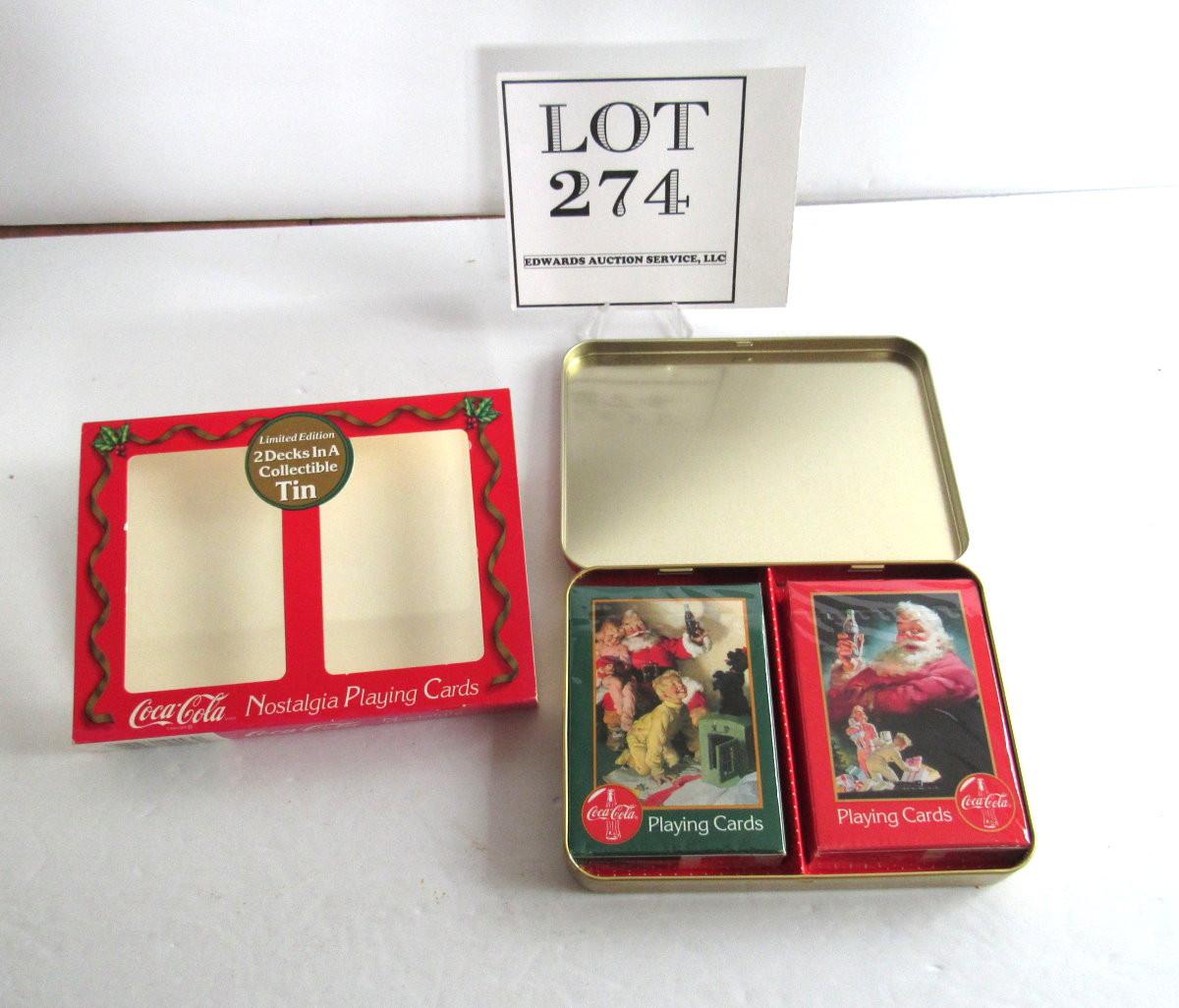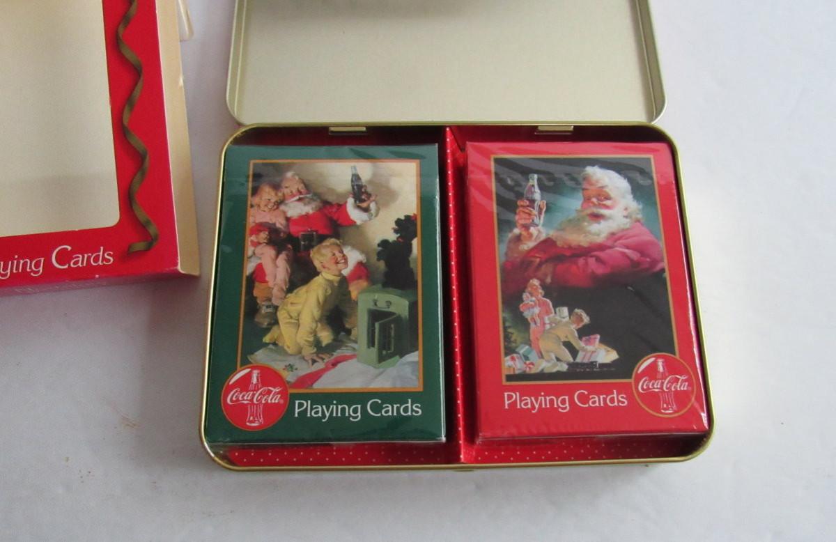 Older Coca Cola Tin With Two Sets of Santa Cards