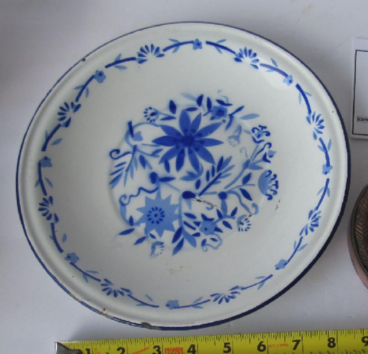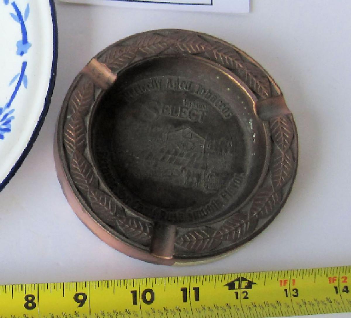 Older Enamelware Decorative Plate and Copper Finish Winston Ashtray