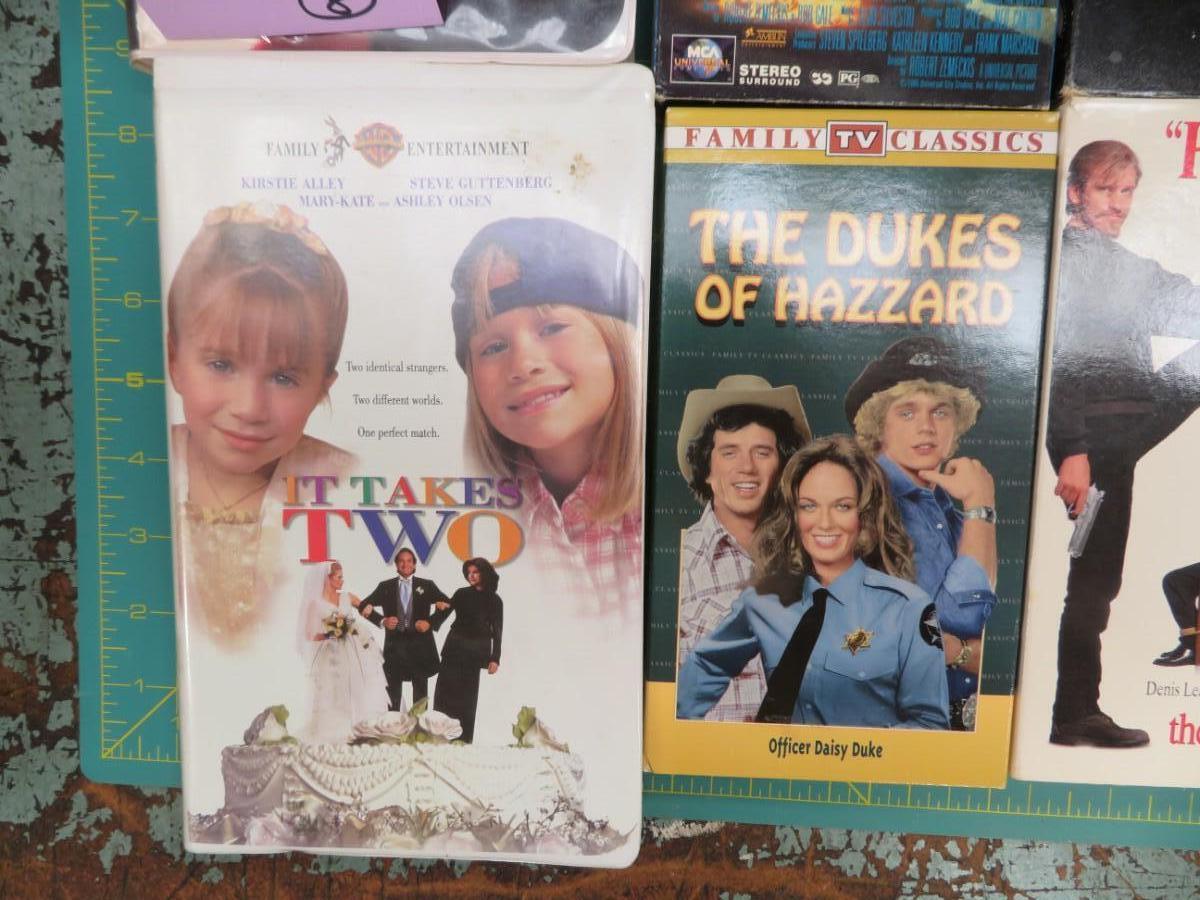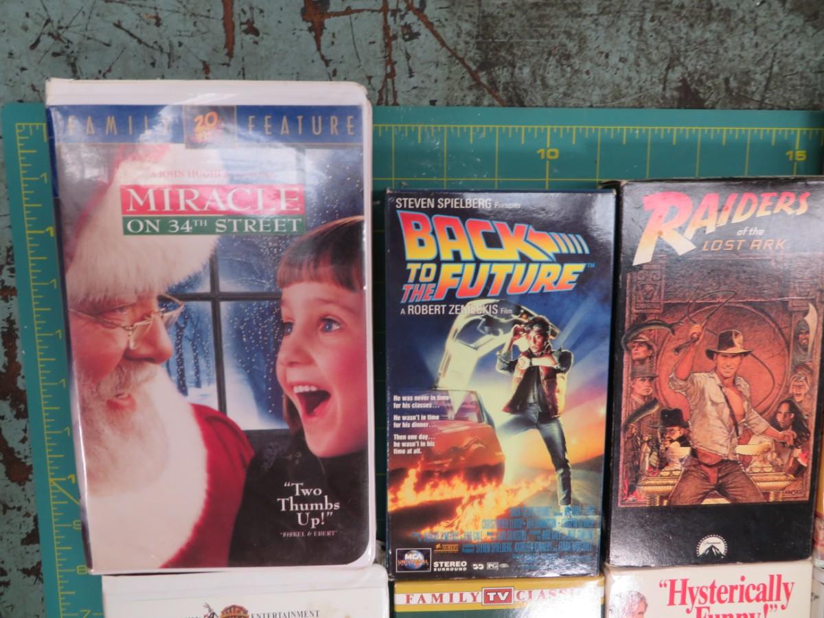 Lot of (8) Vintage VHS tape MOVIES includes Christmas Miracle on 34th Street, Back to the Future, The Big Green Soccer, Dukes of Hazard, The Ref, Mary-Kate & Ashley Olson Holiday in the Sun, Raiders. Not tested.