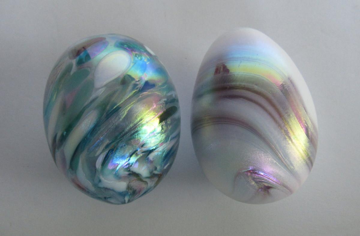 Older Gibson Glass Co Art Glass Hand Made Eggs and Mosser Glass Turkey