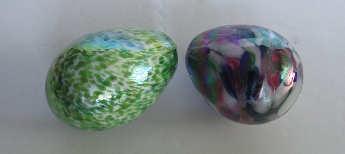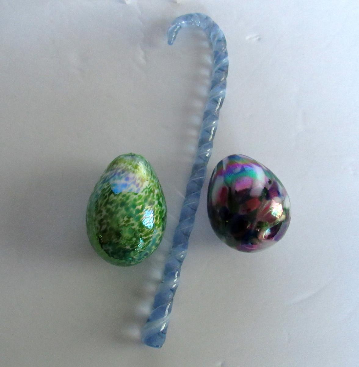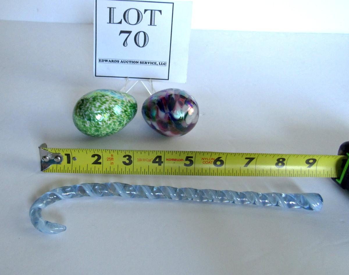 Older Gibson Glass Co Hand Made Art Glass Eggs and Glass Candy Cane Ornament