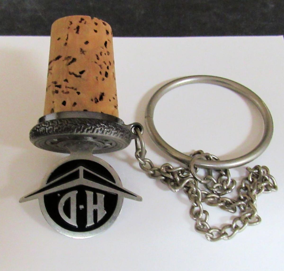 Older Harley Davidson Bottle Stopper On Chain, Pewter