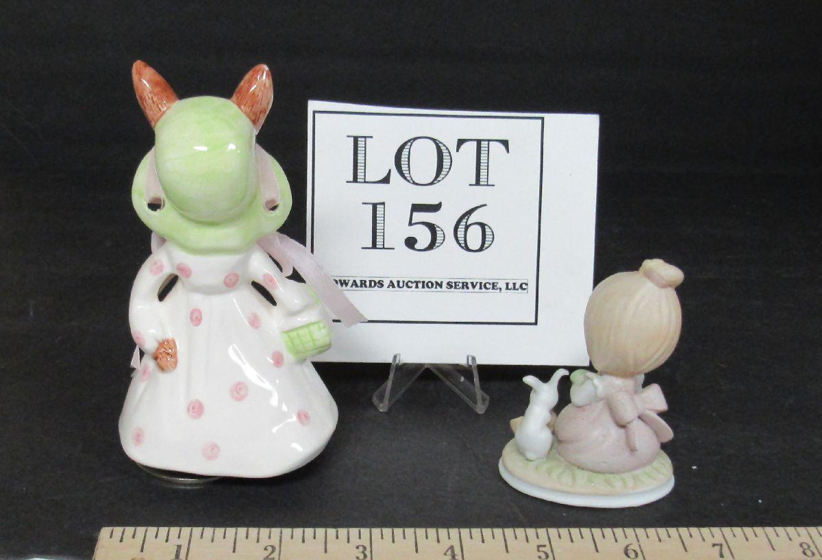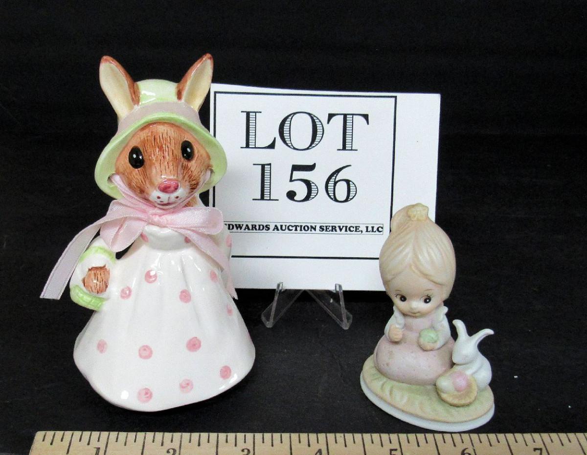 Older Lefton Rabbit Music Box and Girl With Rabbit Figurine
