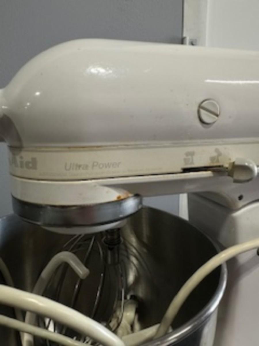 OLDER MODEL KITCHENAID STAND MIXER WITH ROOSTER COVER