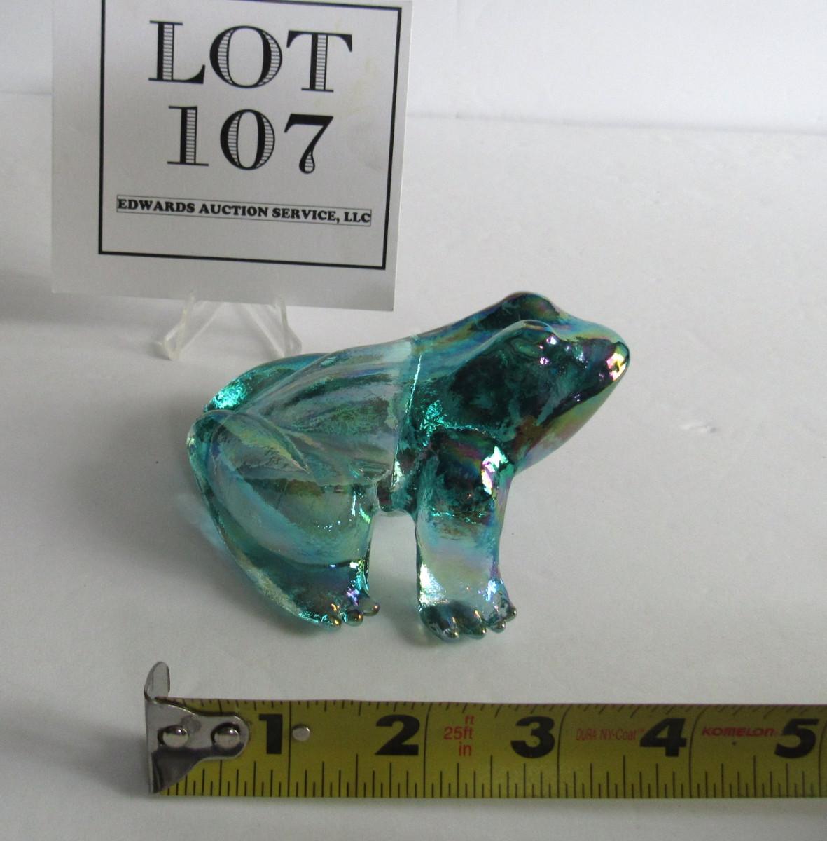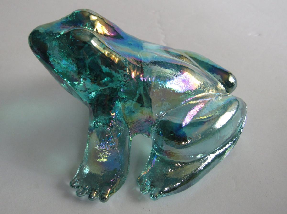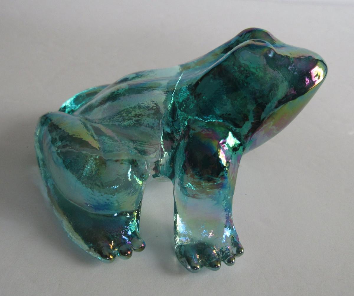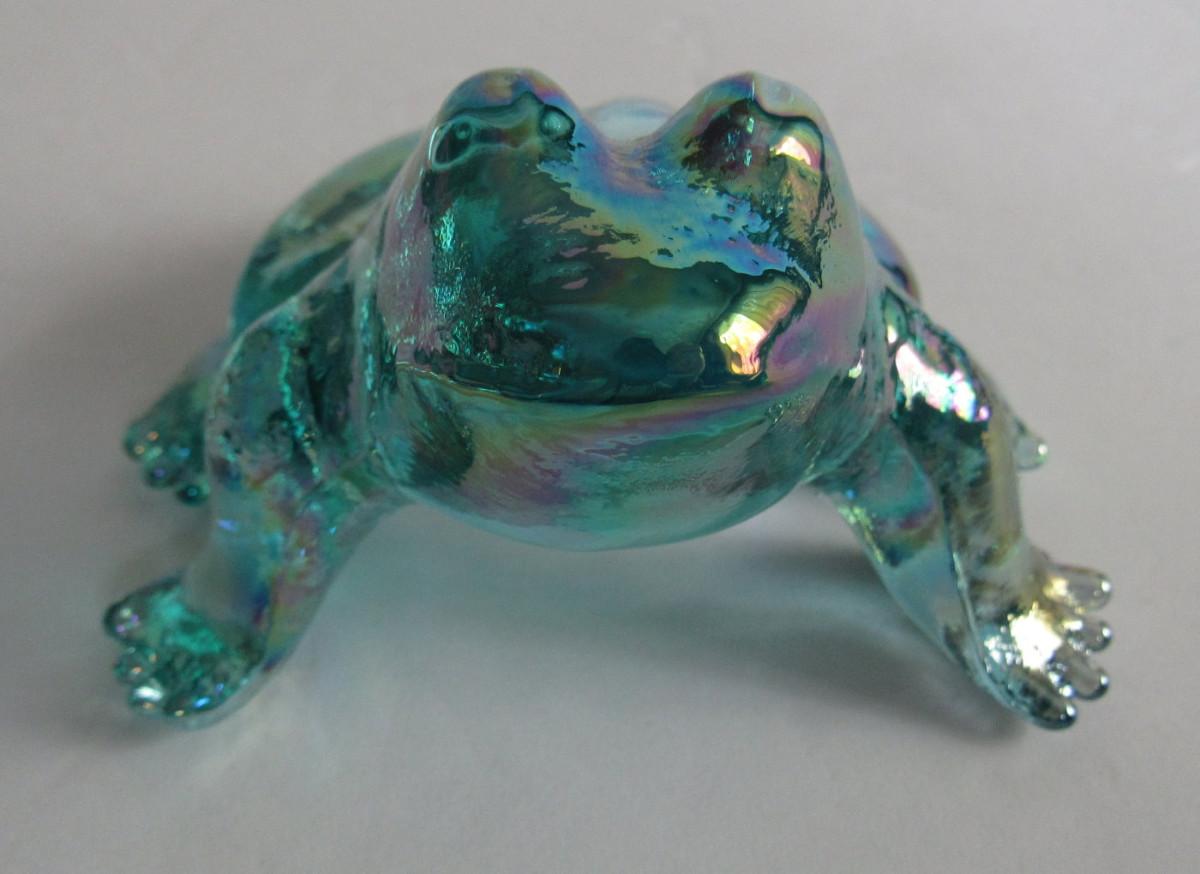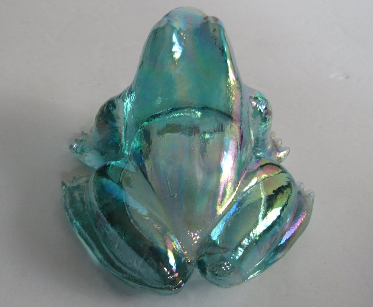 Older Mosser Glass Frog, Teal Carnival Glass