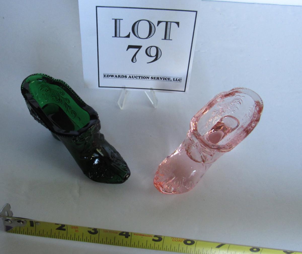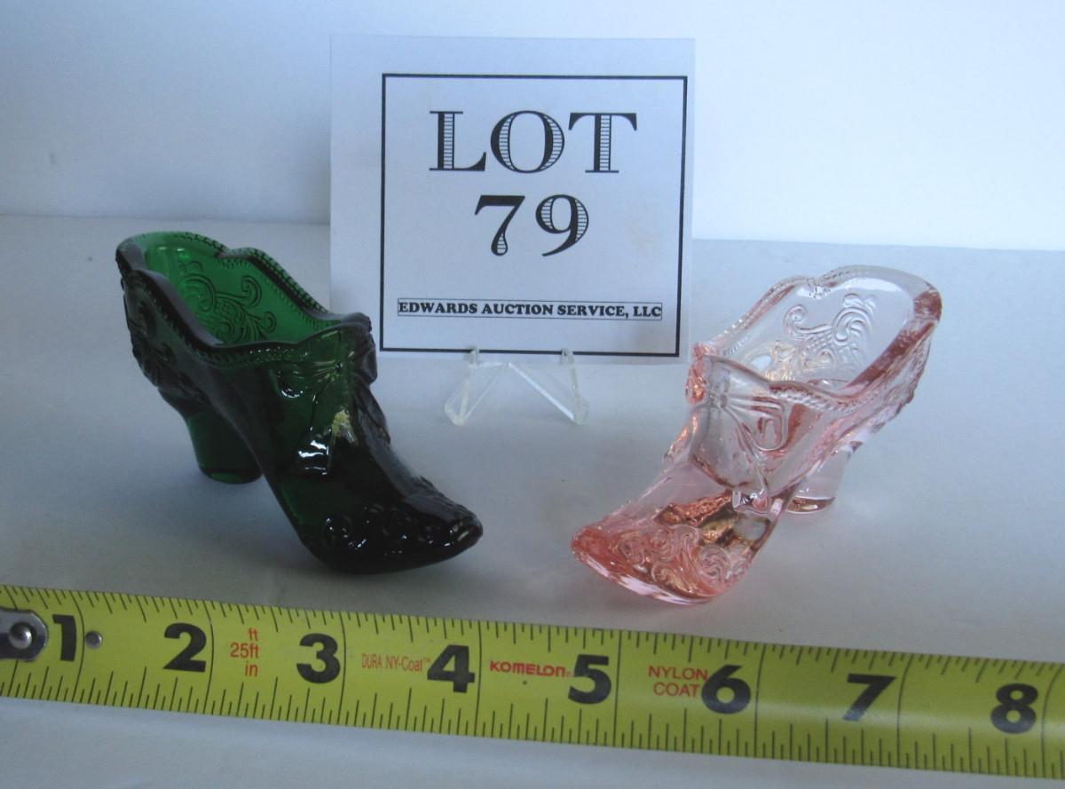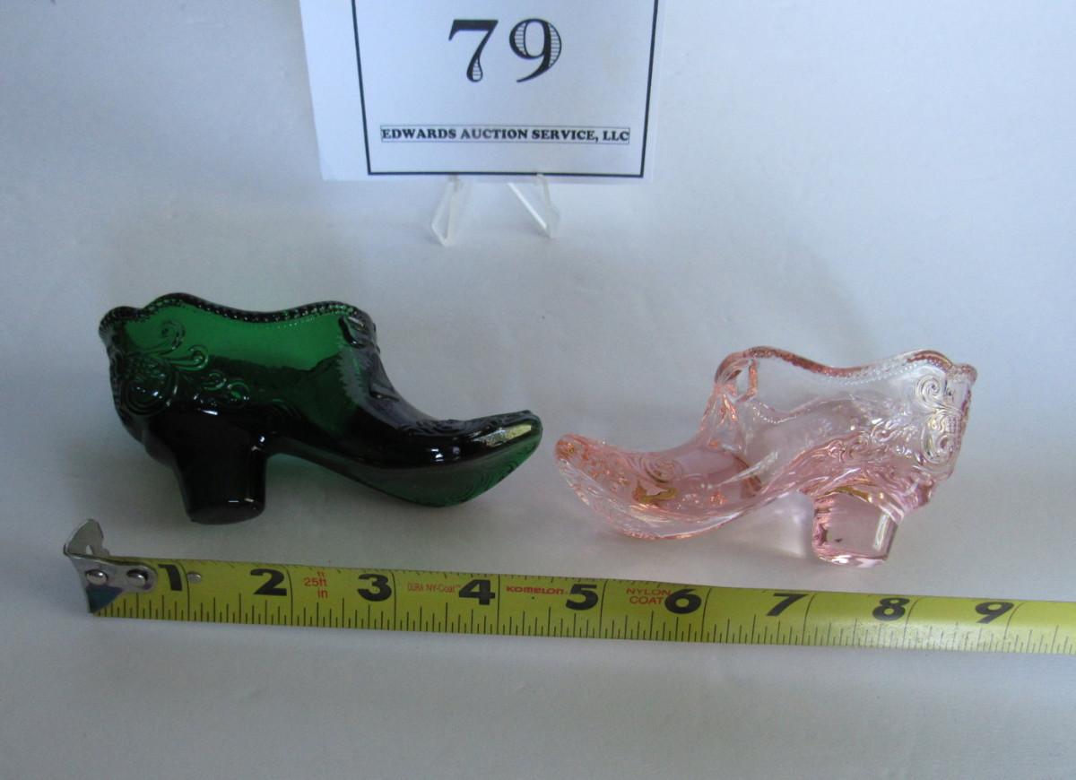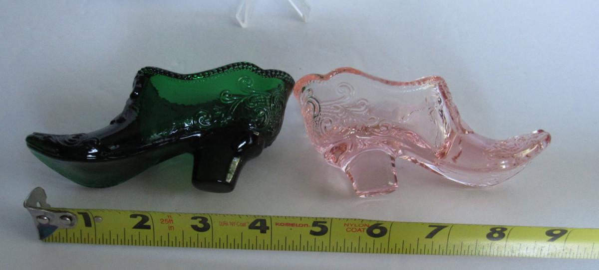 Older Mosser Glass Slippers, Dark Green, Light Pink