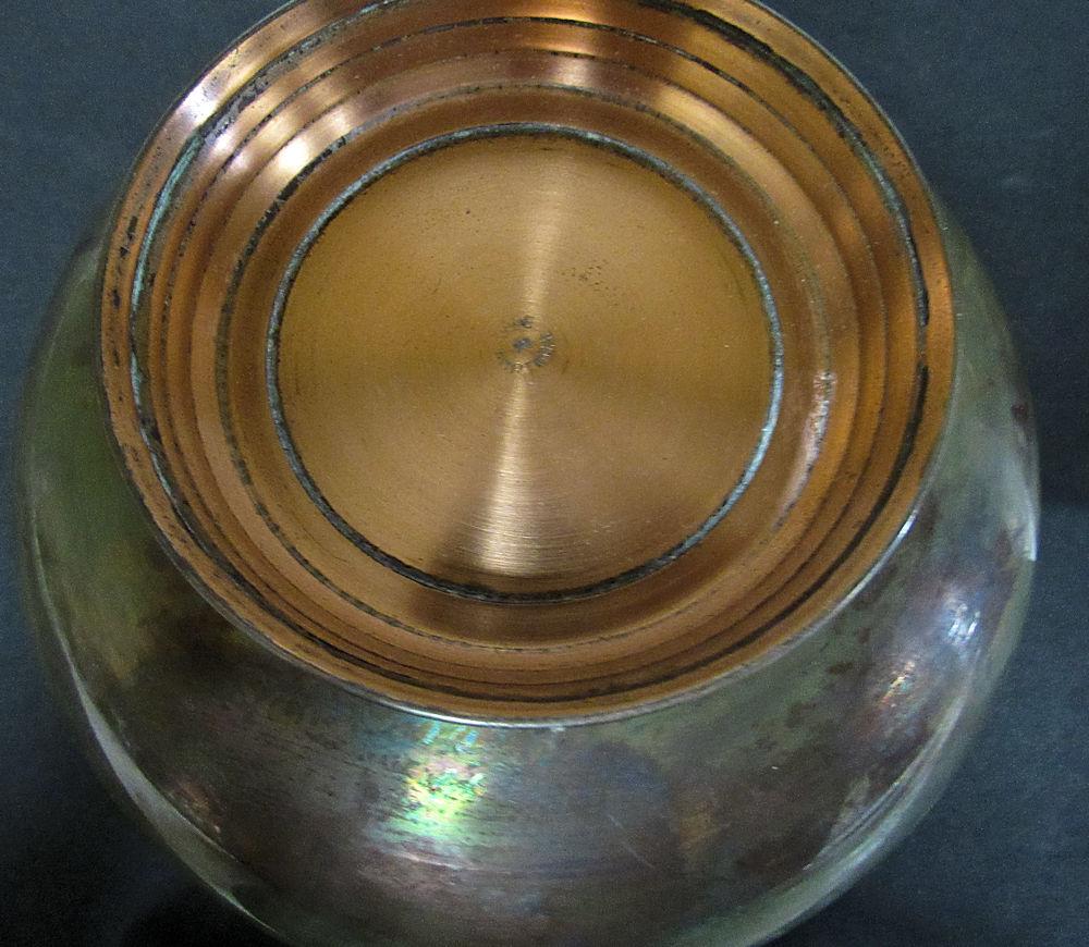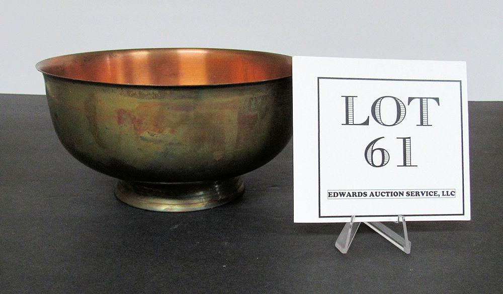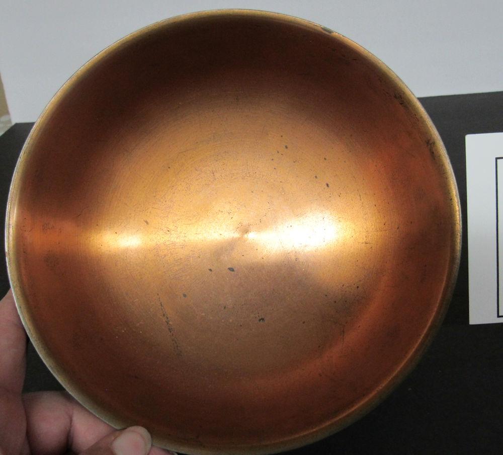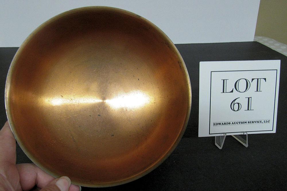 Nice quality, overall good condition but has lots of patina, and some spotting from aging. It is 7 1/4" in diameter x 3 3/4" tall with a little foot on bottom. Shipping available at shipping cost plus $5.00 handling fee for up to 8 lots or $10.00 handling fee for 9 or more lots.