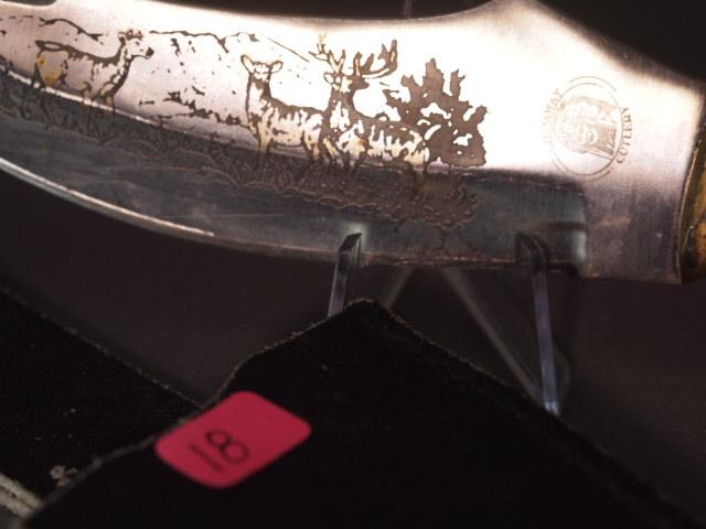 About 10 inches over length imitation Bone handle Full tang and sheath