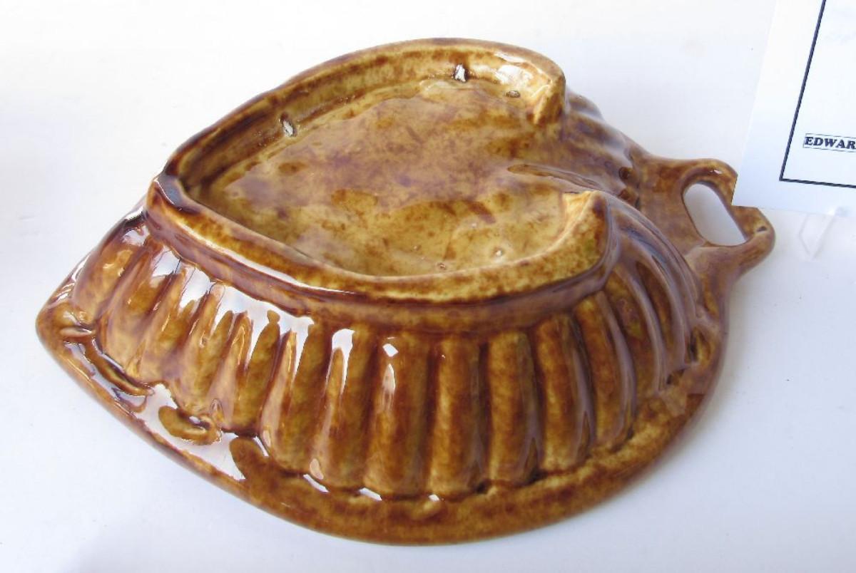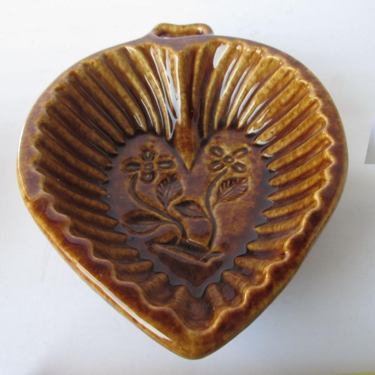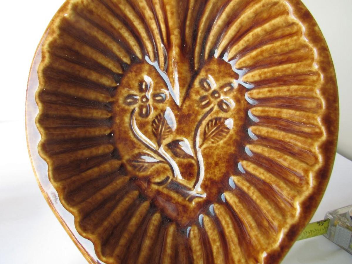 Older Unusual Heart Shaped Spongewear Type Pottery Mold, Floral Design