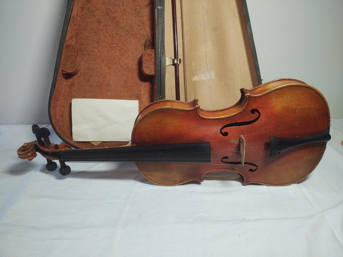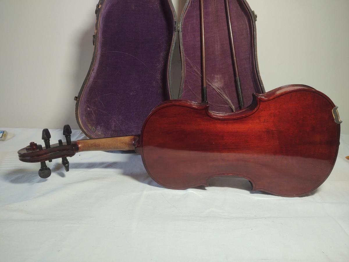 First one might be restorable. The paper at the end of the first violin's series of photos is what is imprinted on the inside of the violin. Second violin is in rough shape as well as the coffin case.