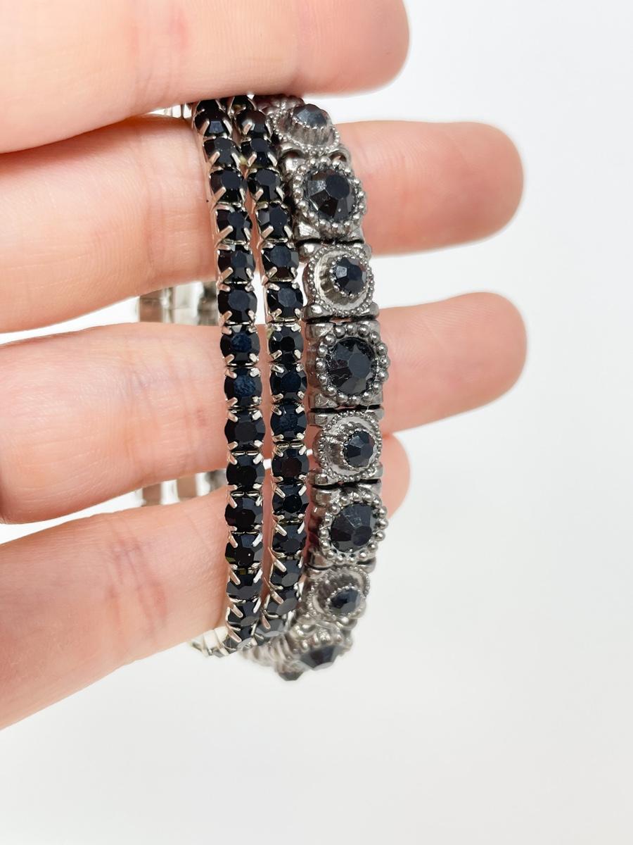 OLE SILVER & BLACK RHINESTONE BRACELET BUNDLE