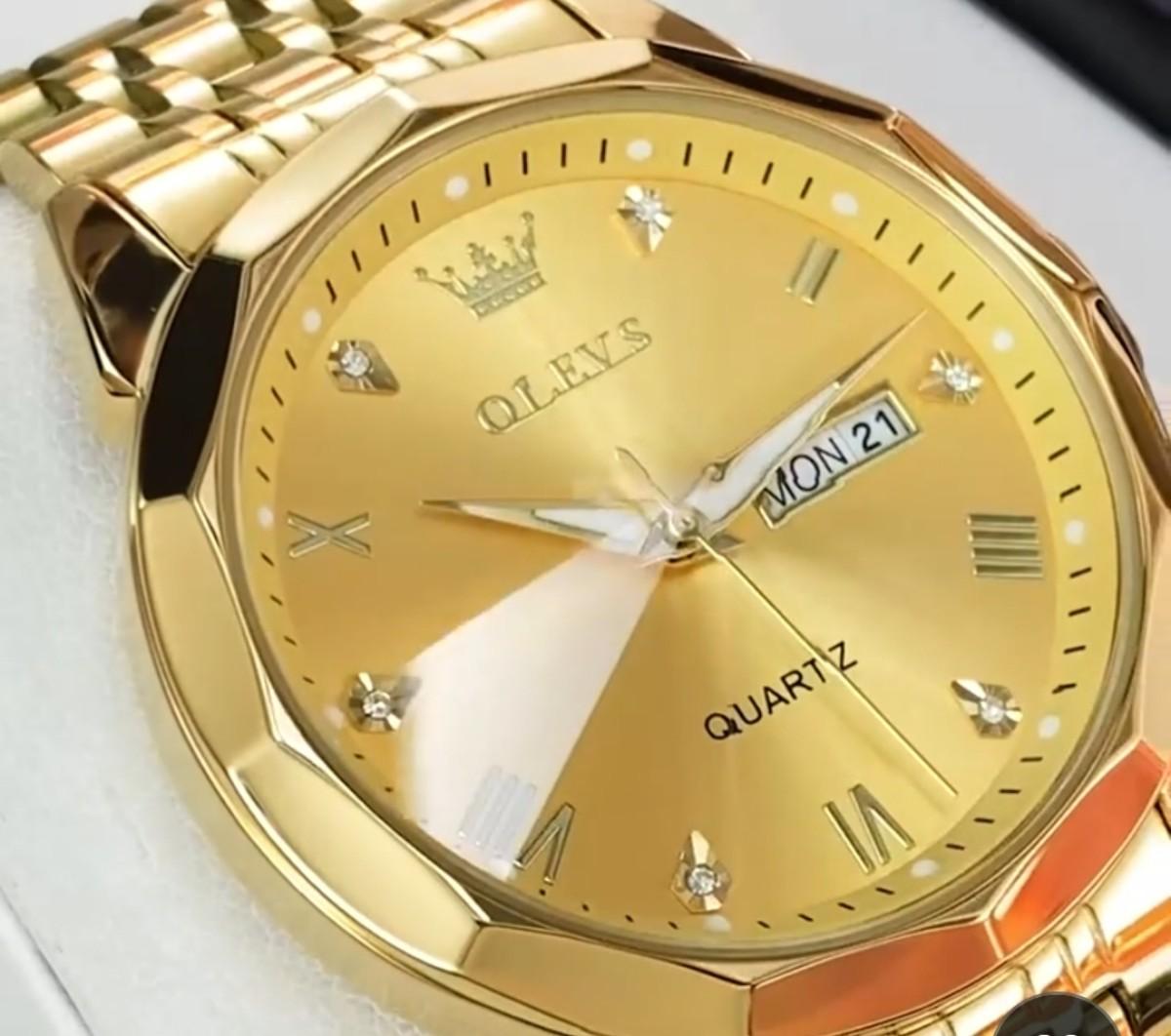 OLEVS Watch for Men Diamond Business Dress Analog Quartz Stainless Steel Waterproof Luminous Date Two Tone Luxury