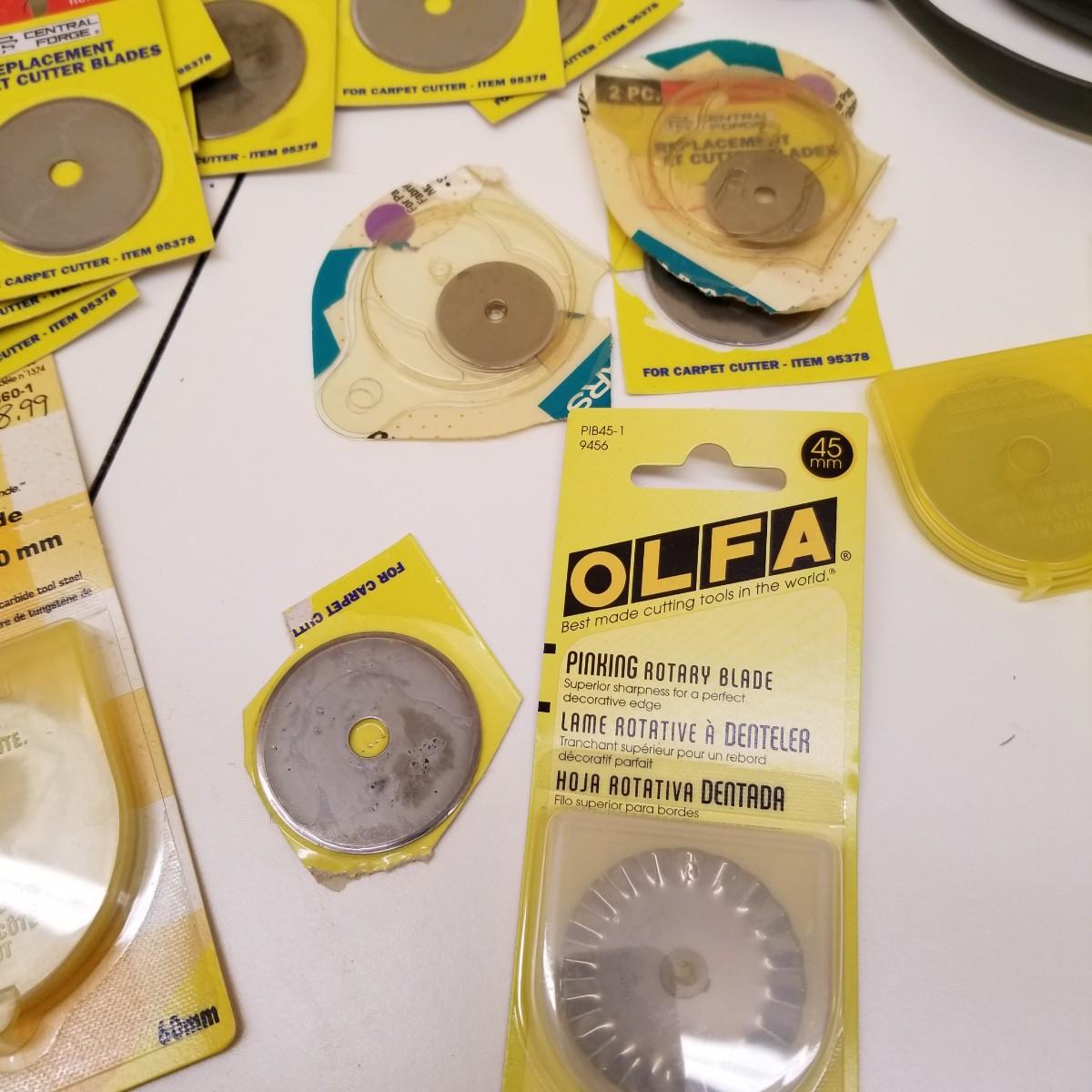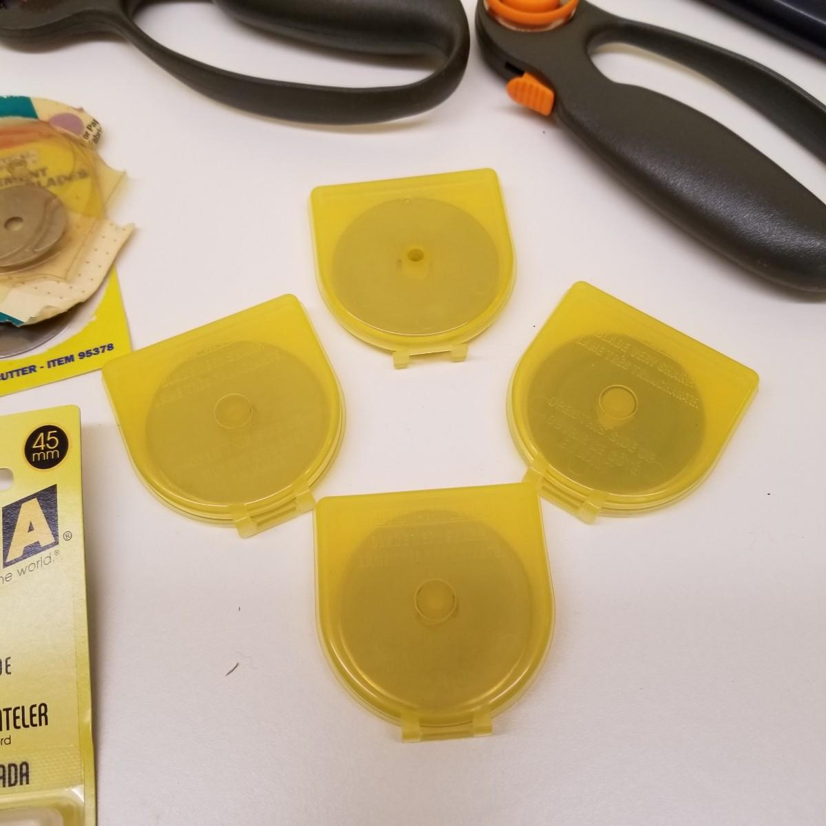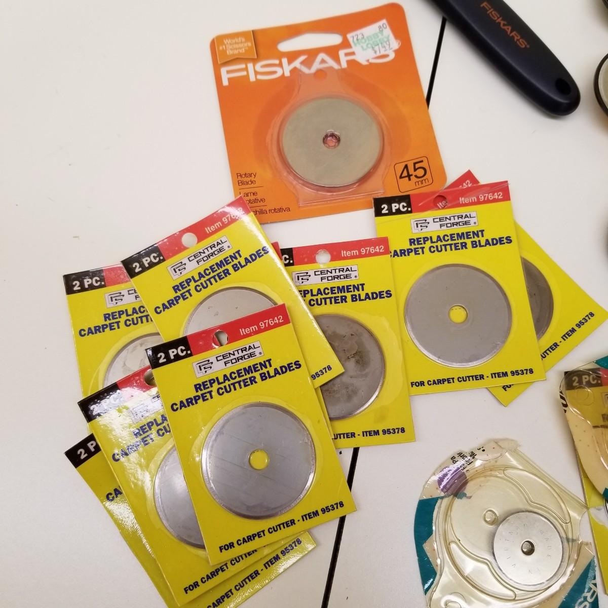 Several different types of rotary cutters for quilting or fabric use. 60mm, 45mm and smaller sizes. Also includes replacement blades. See photos for details. Shipping available.